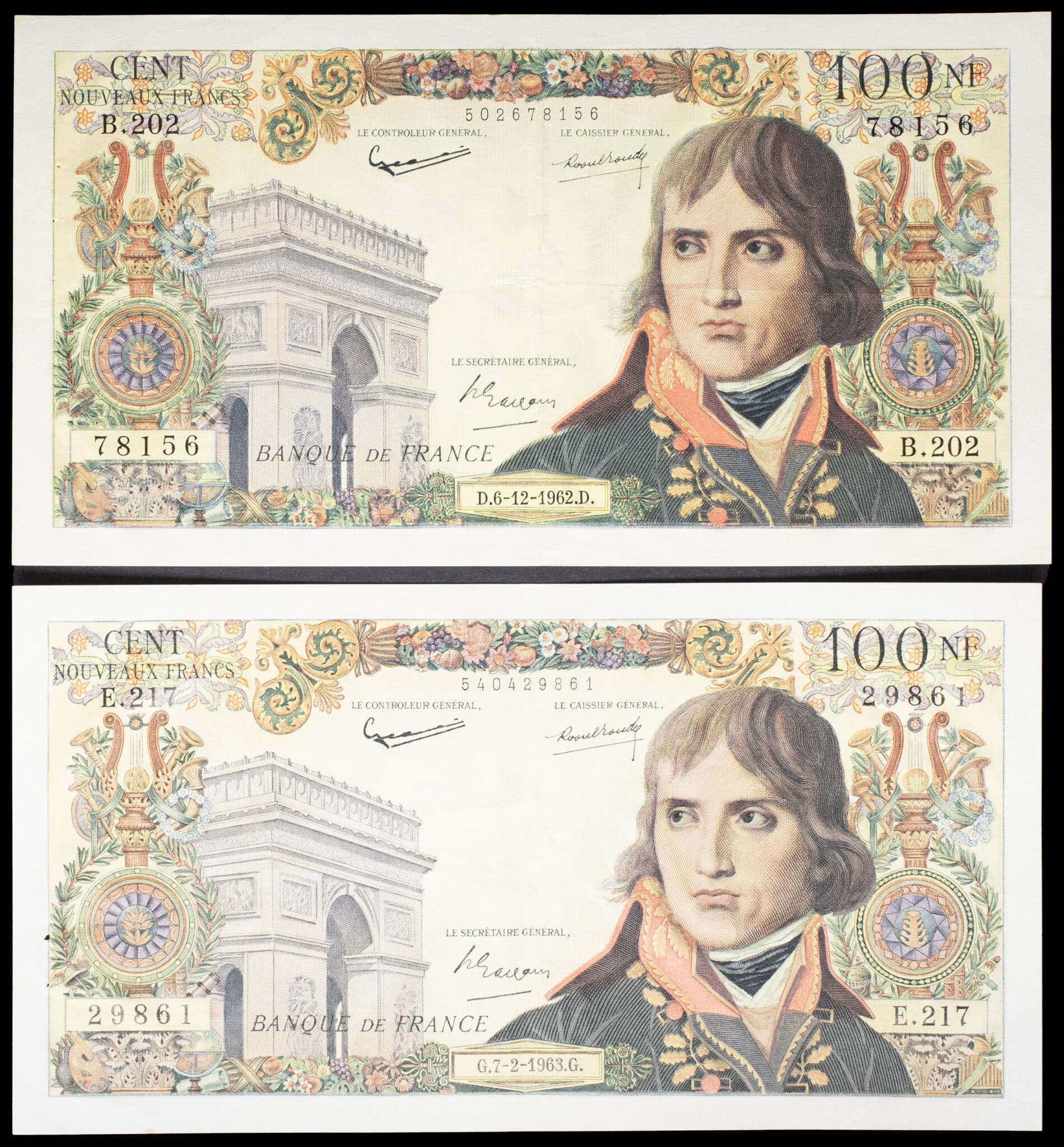 - Lot (2) - 100 nouveaux francs type “Napoléon Bonaparte” 6-12-1962 et 7-2-1963.