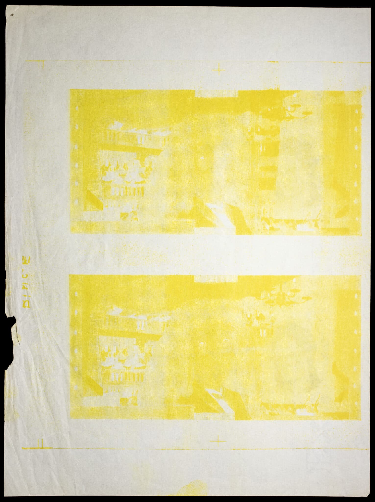 Feuille de tests d’impression à l’encre jaune (2) de recto de 500 nouveaux francs type “Molière” ND (1960).