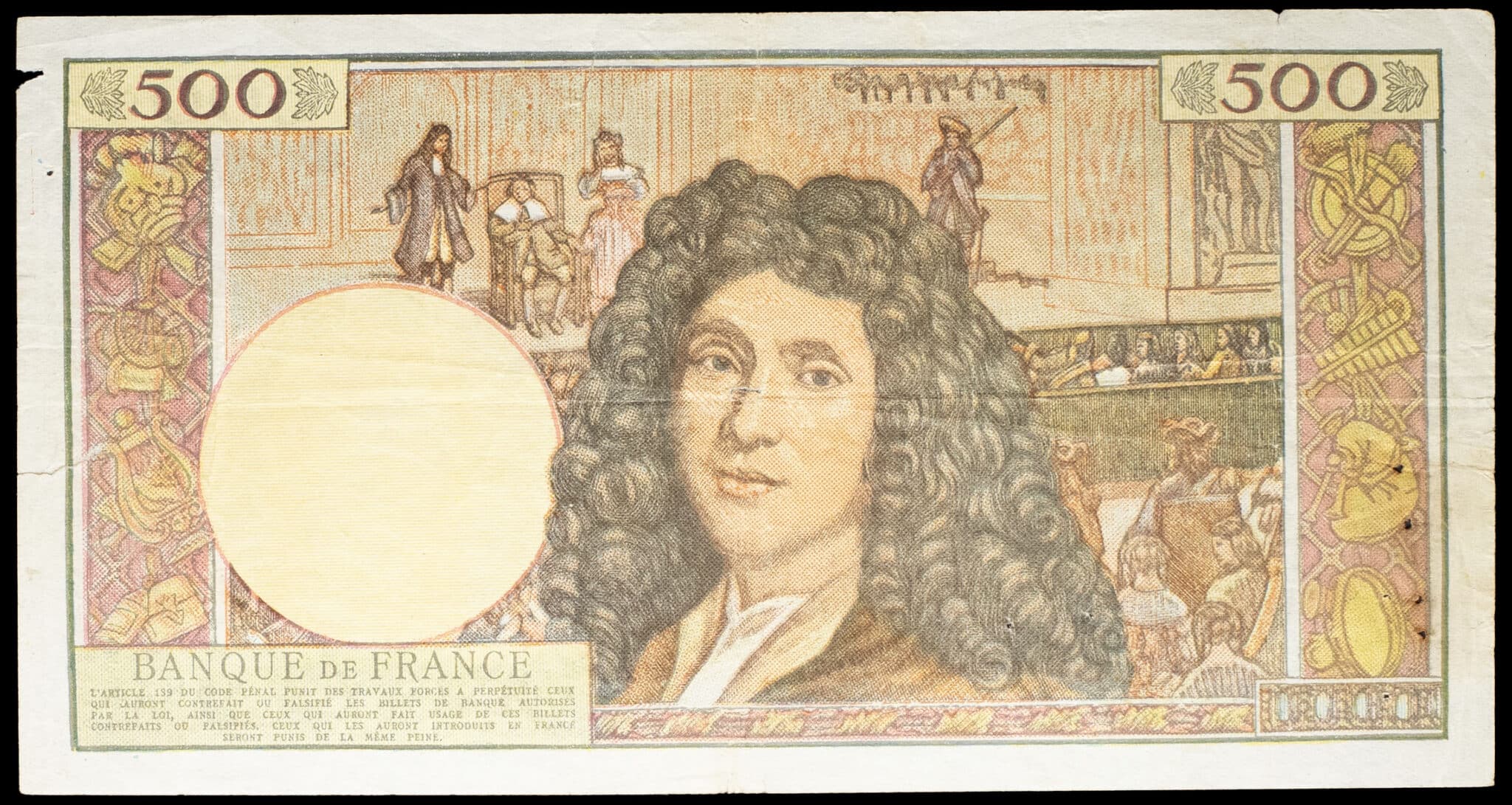 - 500 nouveaux francs type “Molière”, faux d’époque (alphabet 5) 7-4-1960.