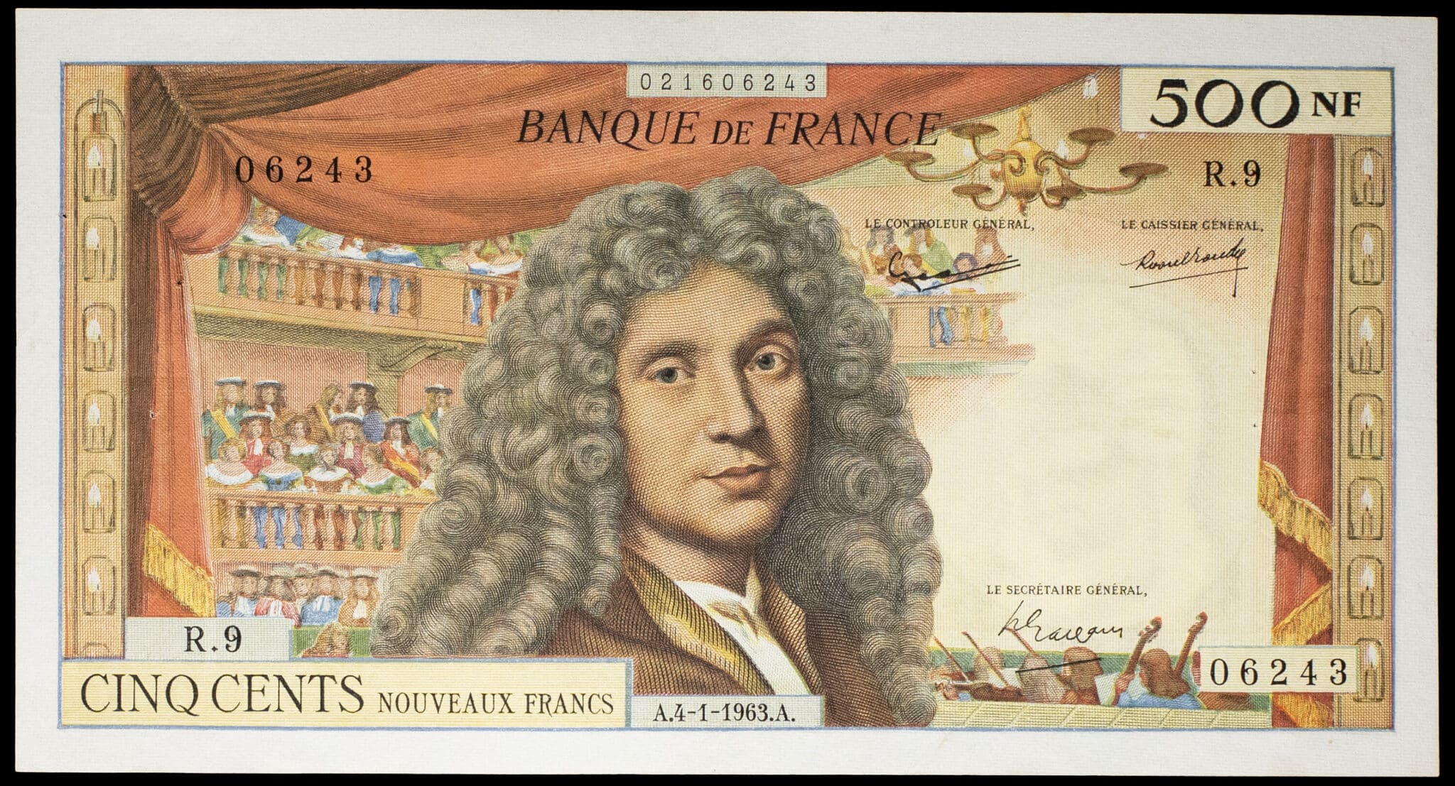 - 500 nouveaux francs type “Molière” (alphabet 9) 4-1-1963.