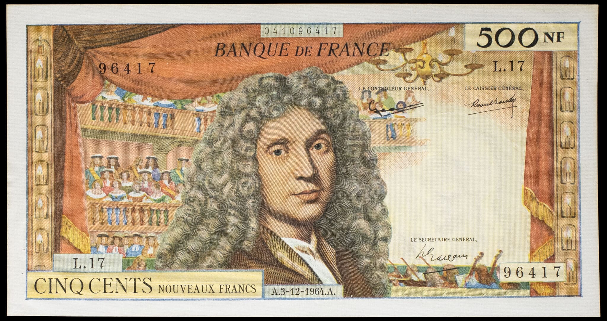 - 500 nouveaux francs type “Molière” (alphabet 17) 3-12-1964.