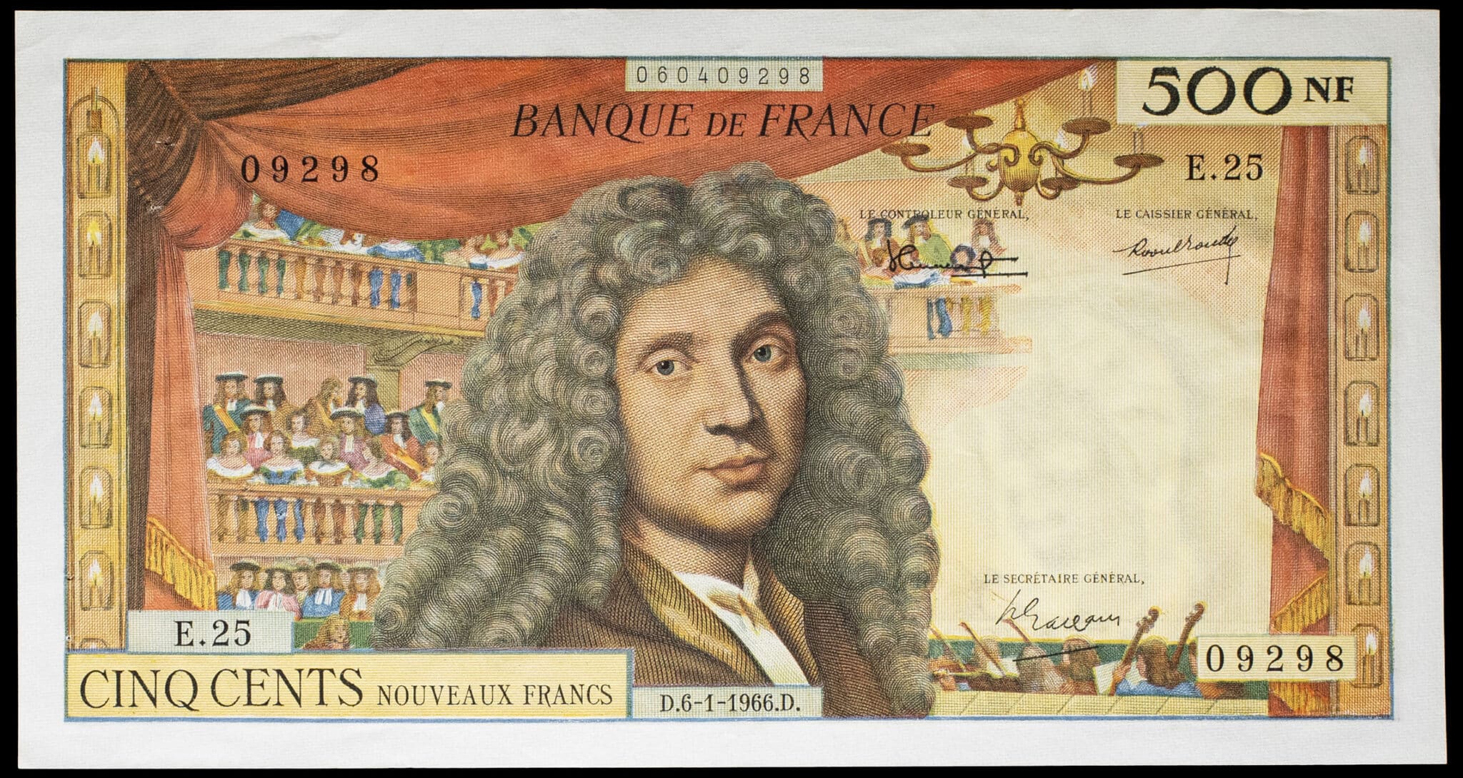 - 500 nouveaux francs type “Molière” (alphabet 25) 6-1-1966.