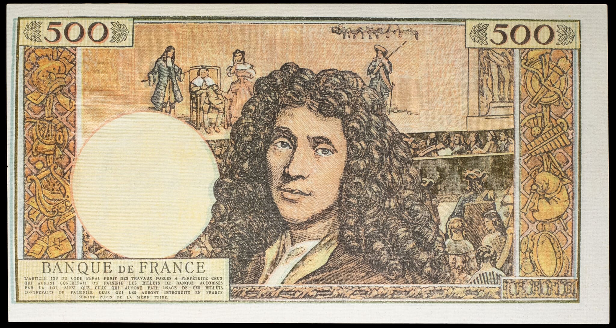 - 500 nouveaux francs type “Molière”, faux d’époque (alphabet 72) 1-10-1964.