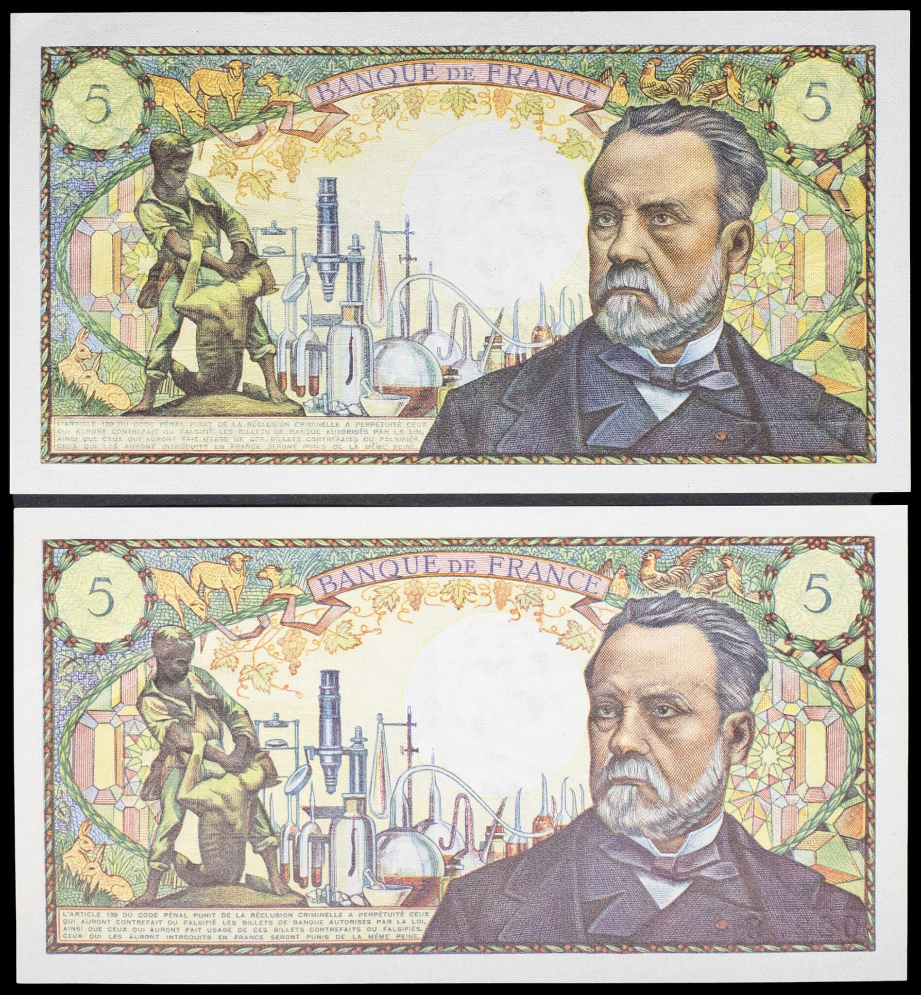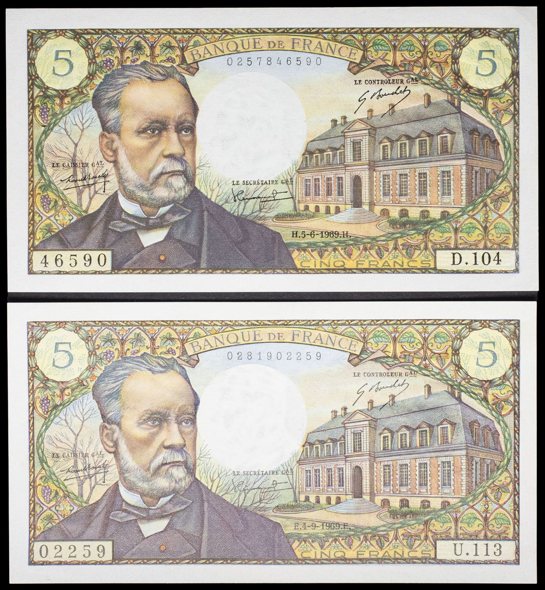 - Lot (2) - 5 francs type "Louis Pasteur" 5-6-1969 et 4-9-1969.