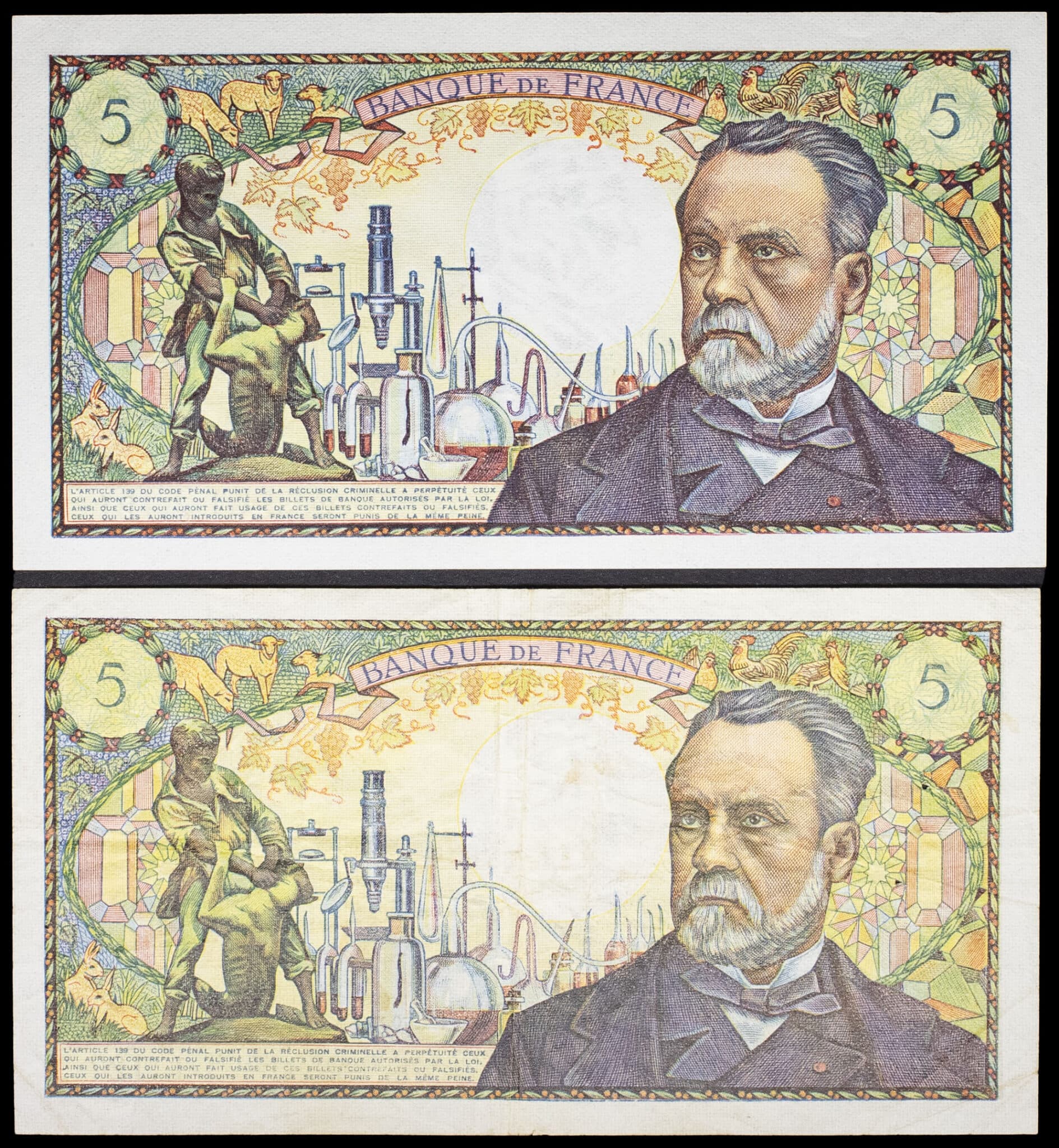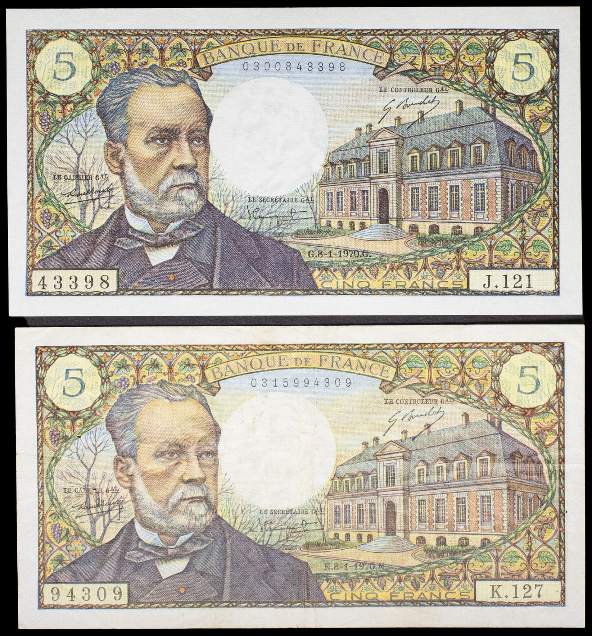 - Lot (2) - 5 francs type “Louis Pasteur” 8-1-1970.