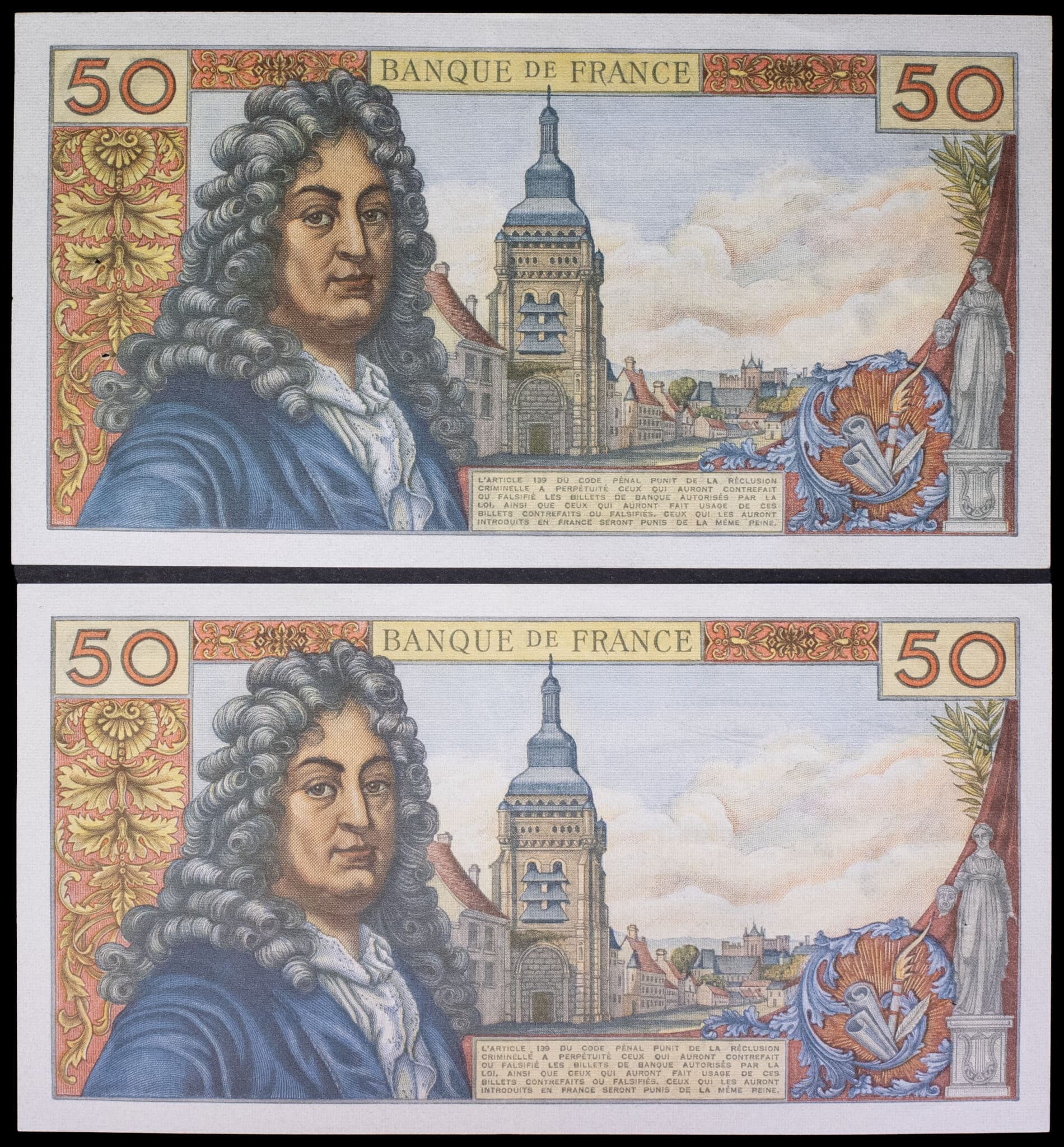 - Lot (2) - 50 francs type “Jean Racine” 6-12-1962.