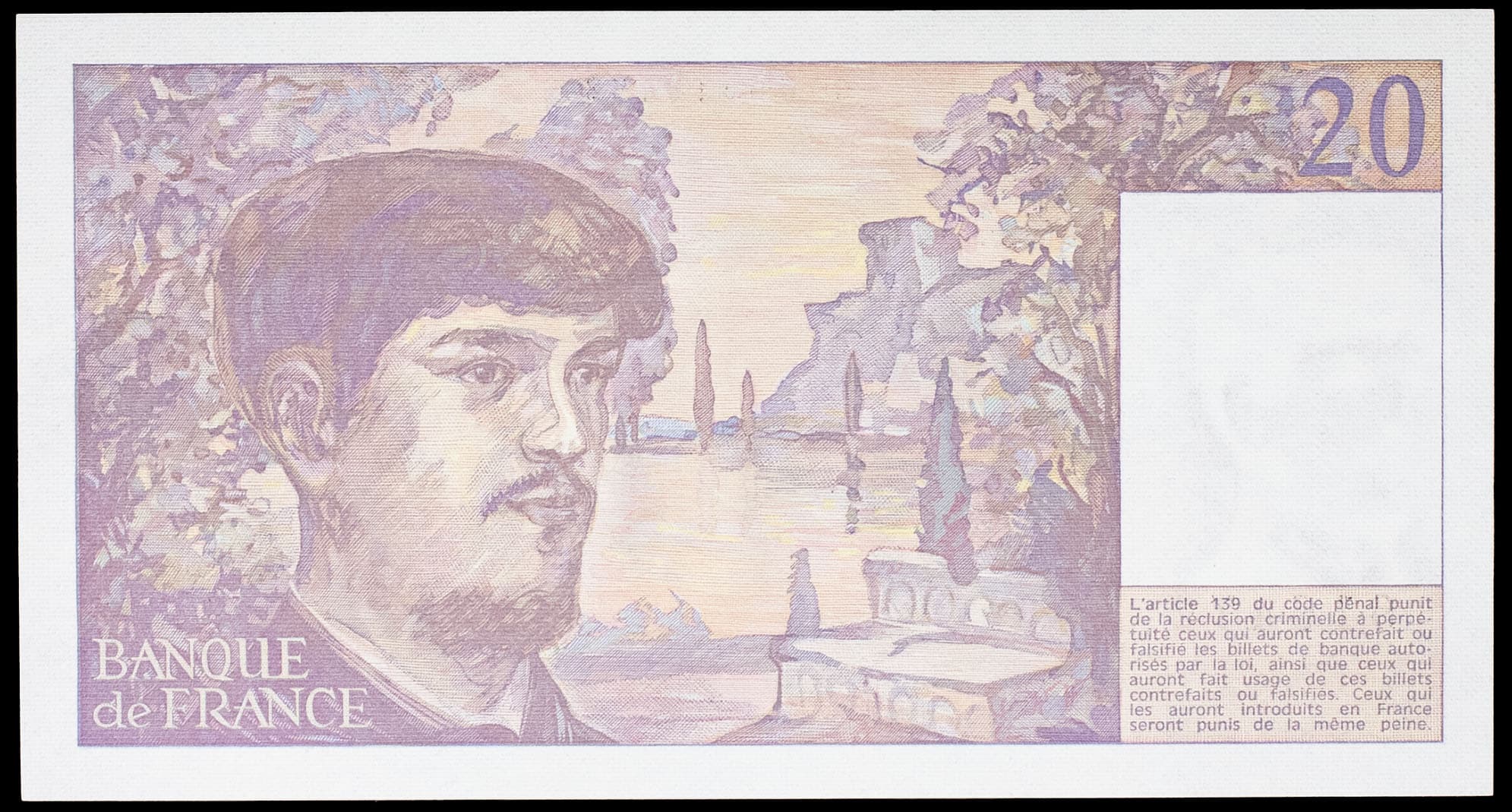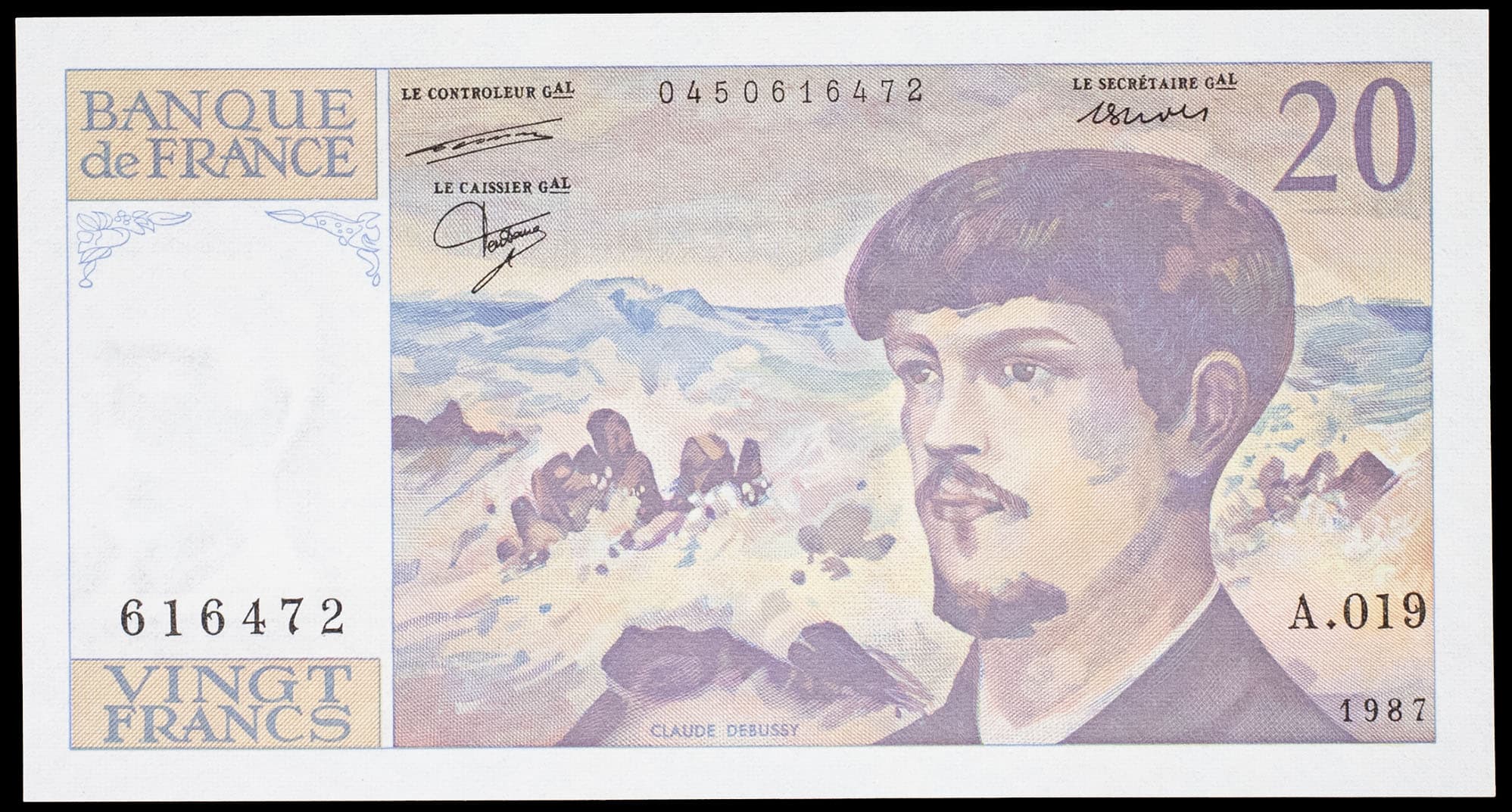 - 20 francs type “Claude Debussy” (alphabet A.019) 1987.