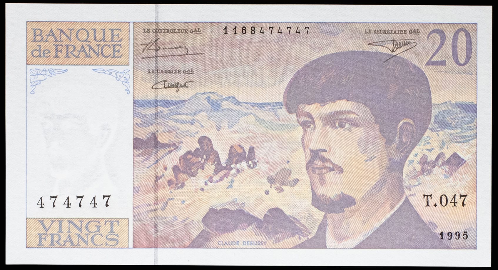 - 20 francs type “Claude Debussy” modifié, avec numéro spécial 1995.