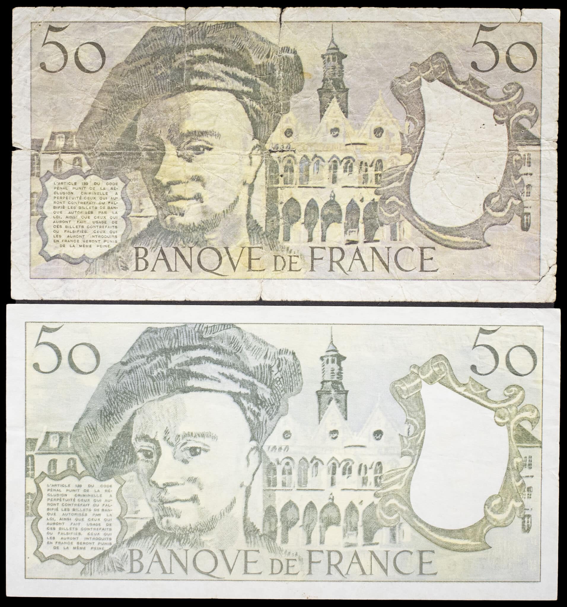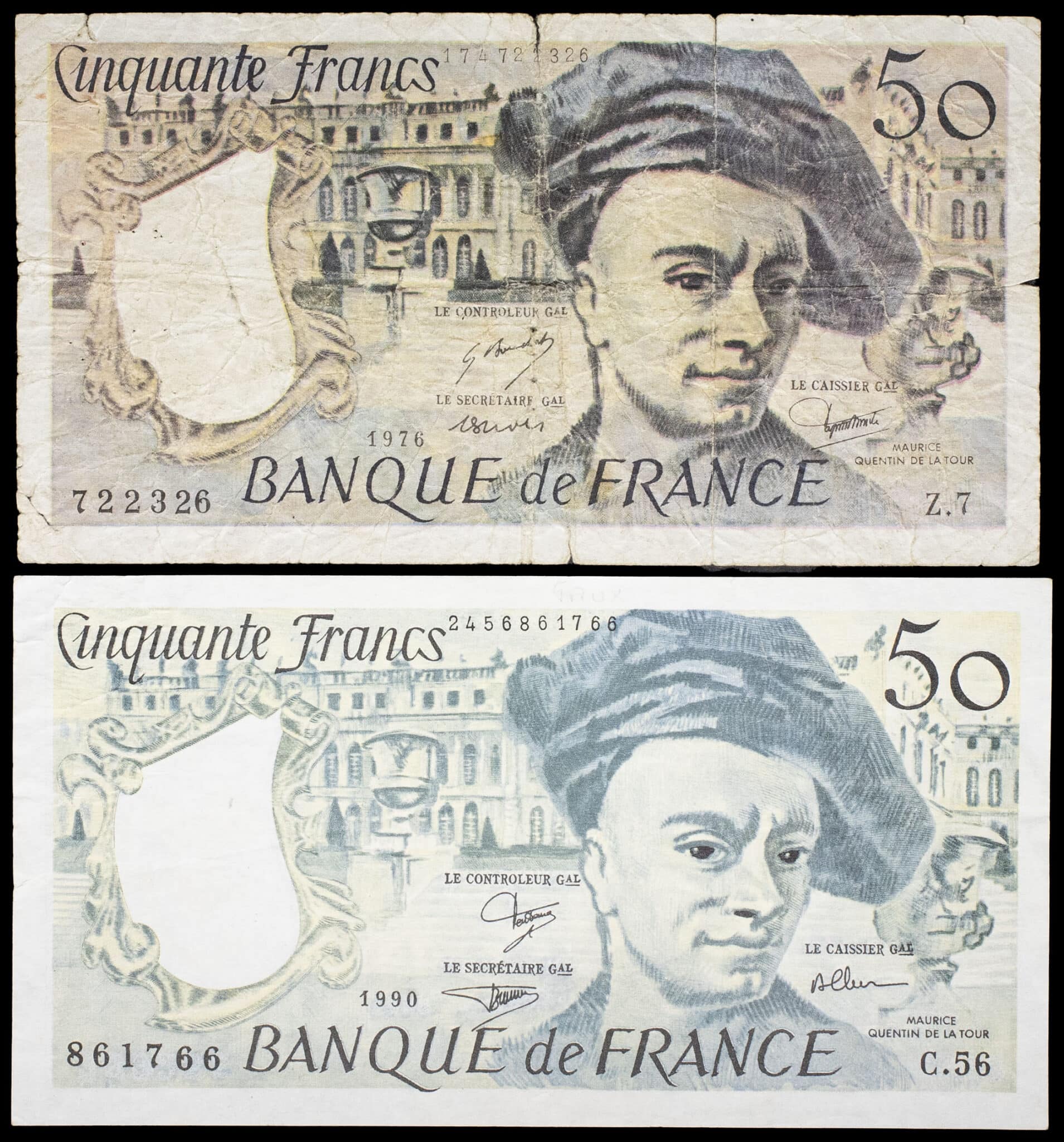 - Lot (2) - 50 francs type “Quentin de la Tour”, faux d’époque 1976 et 1990.