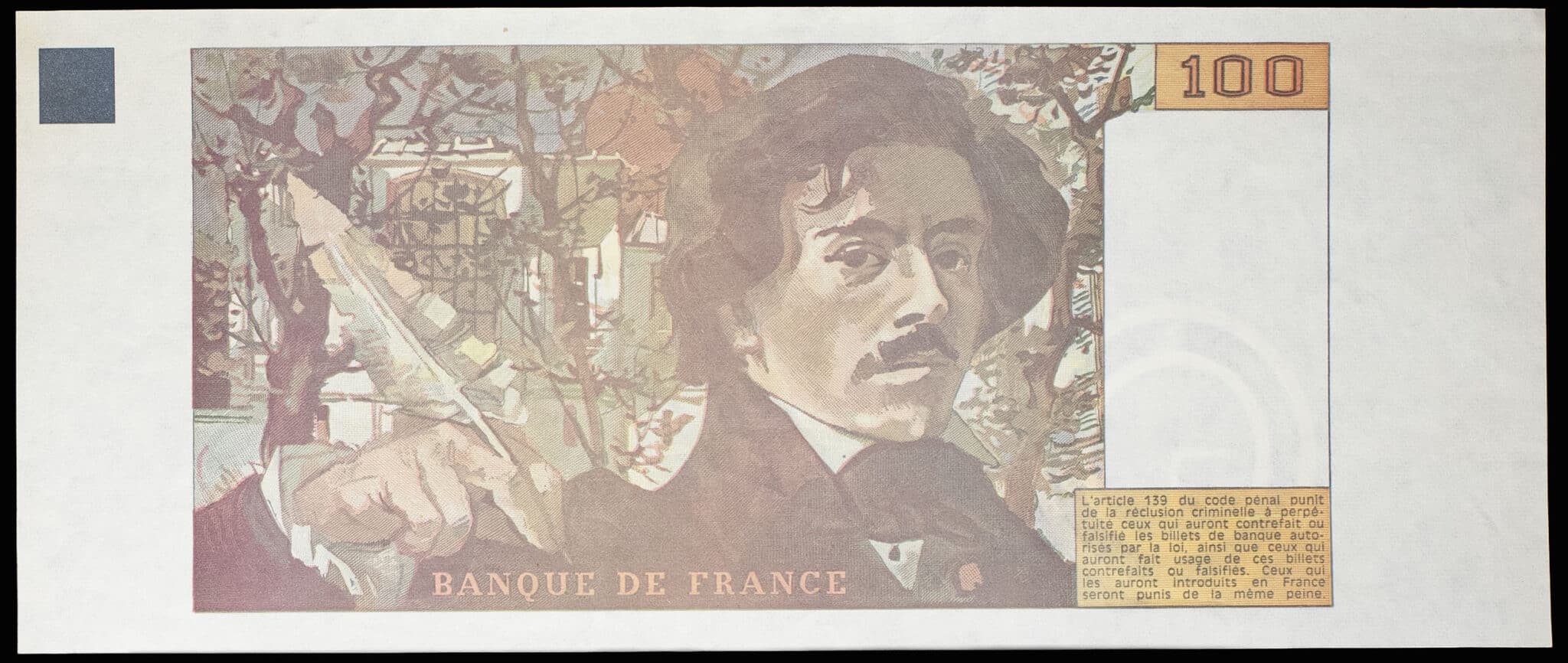 - Épreuve de 100 francs type “Eugène Delacroix” modifié (FRONT-BACK PROOF) ND (1978).