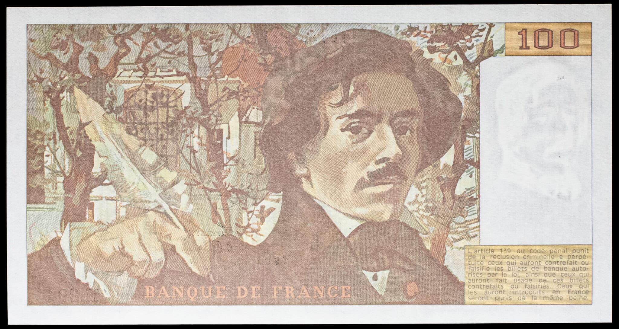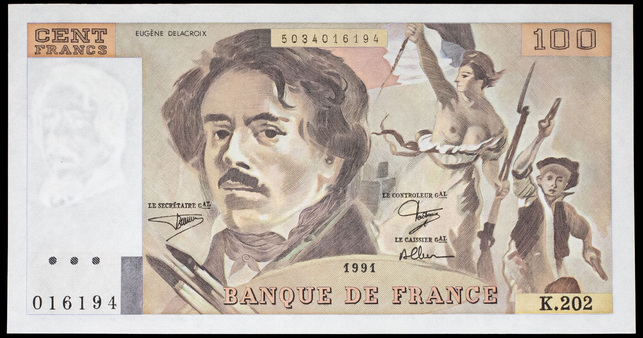 - 100 francs type “Eugène Delacroix” impression en continu (alphabet 202) 1991.