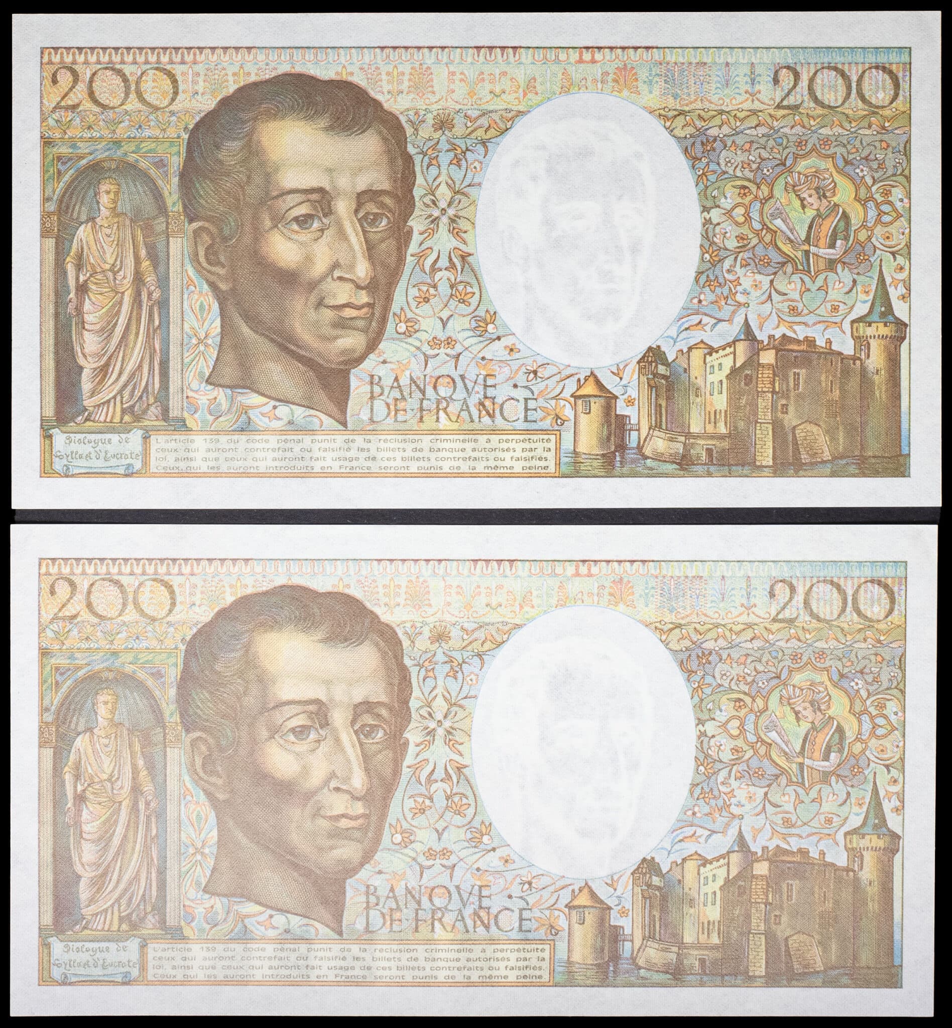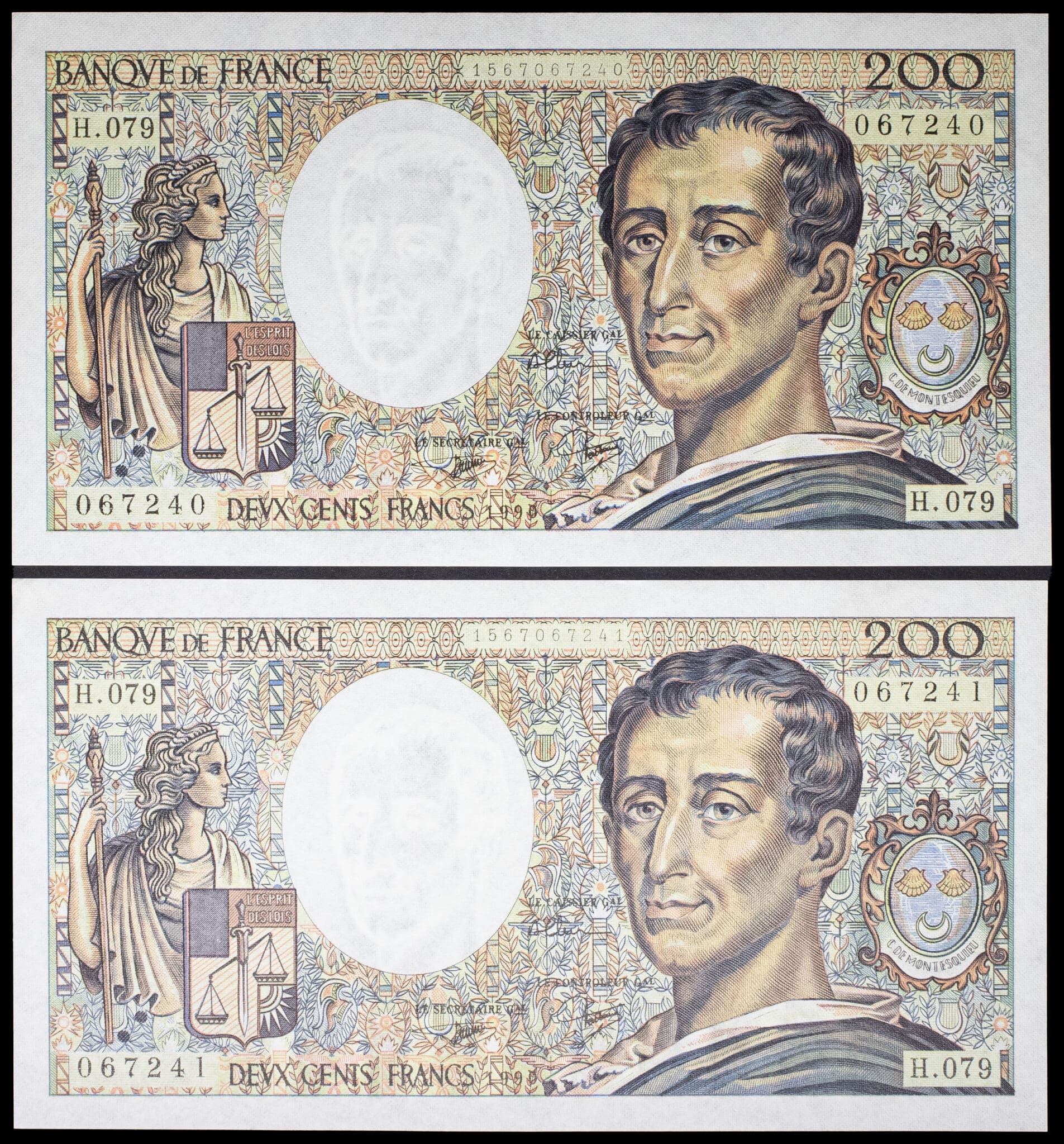 - Lot (2) - 200 francs type “Montesquieu” (alphabet 079) avec numéros consécutifs 1990.
