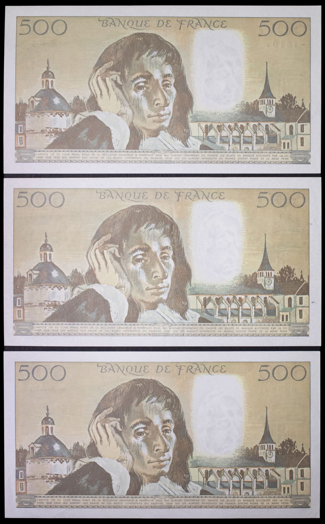 - Lot (3) - 500 francs type “Blaise Pascal” (signatures J) 2-9-1993.