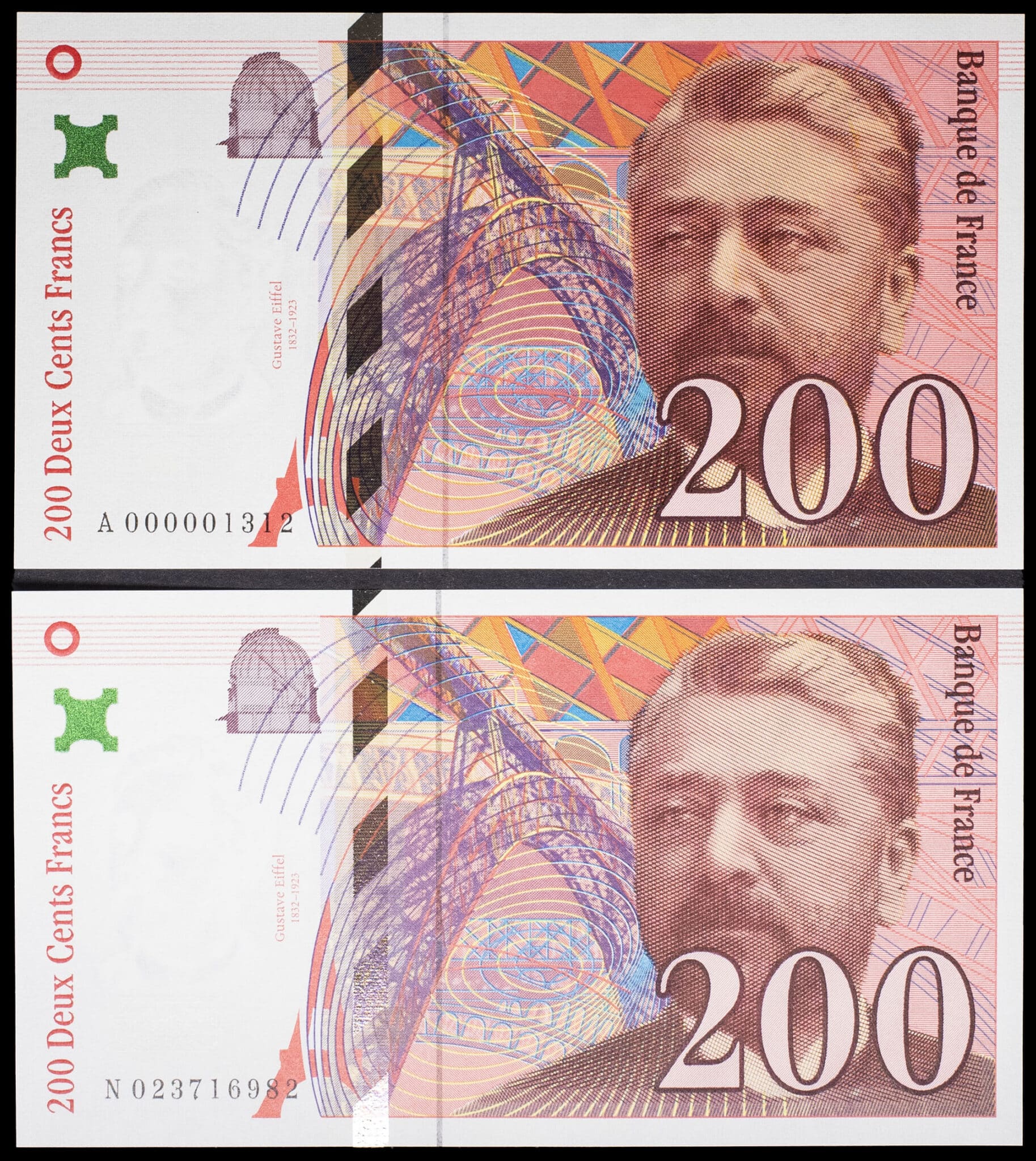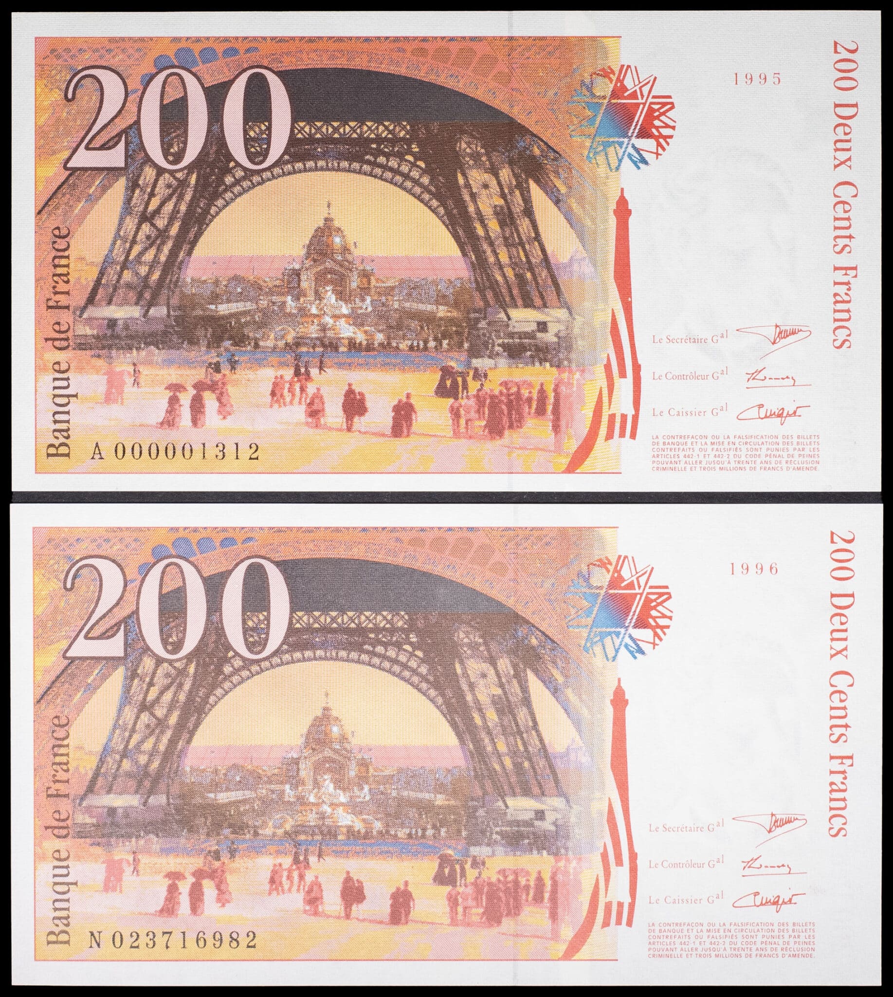 - Lot (2) - 200 francs type “Gustave Eiffel” (signatures A) 1995-1996.