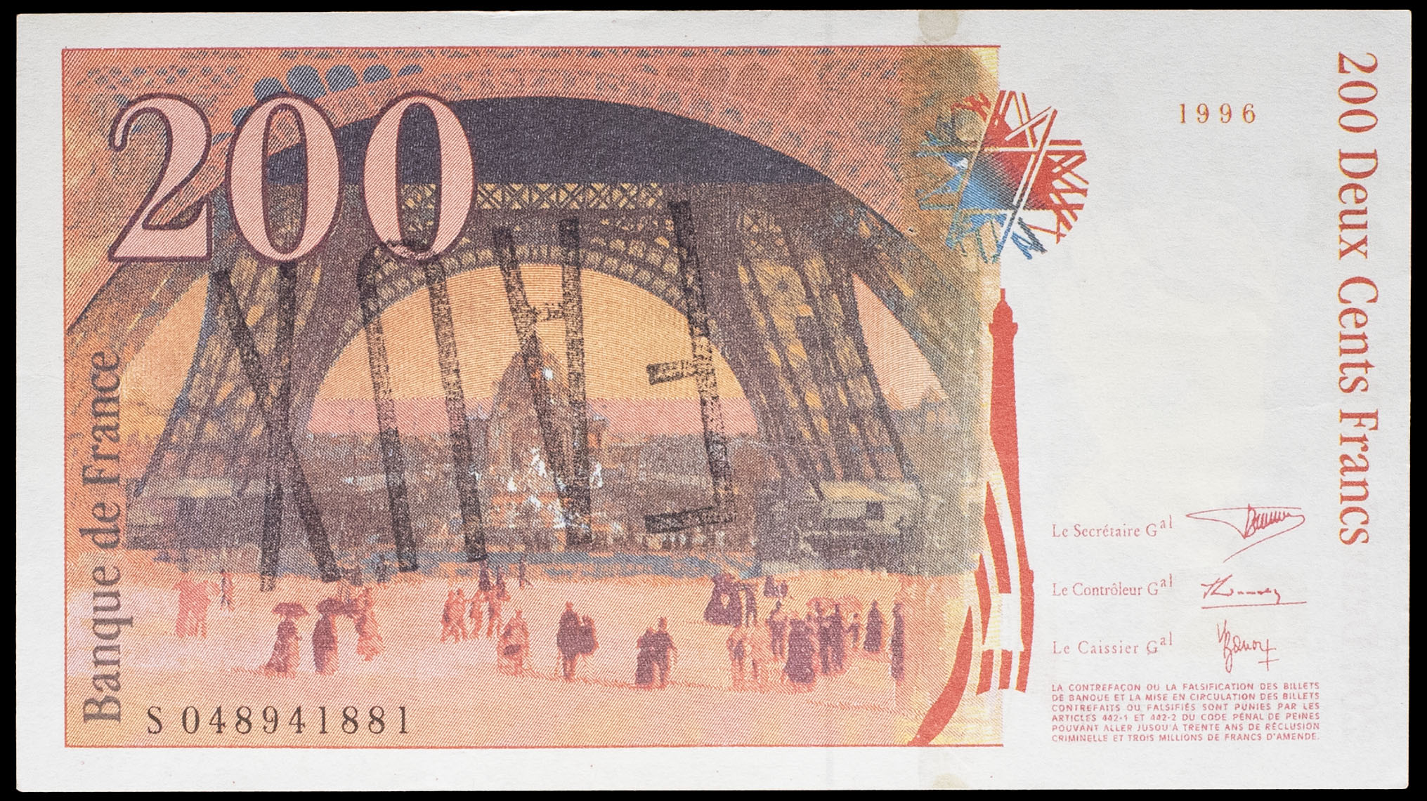 - 200 francs type “Gustave Eiffel”, faux d’époque 1996.