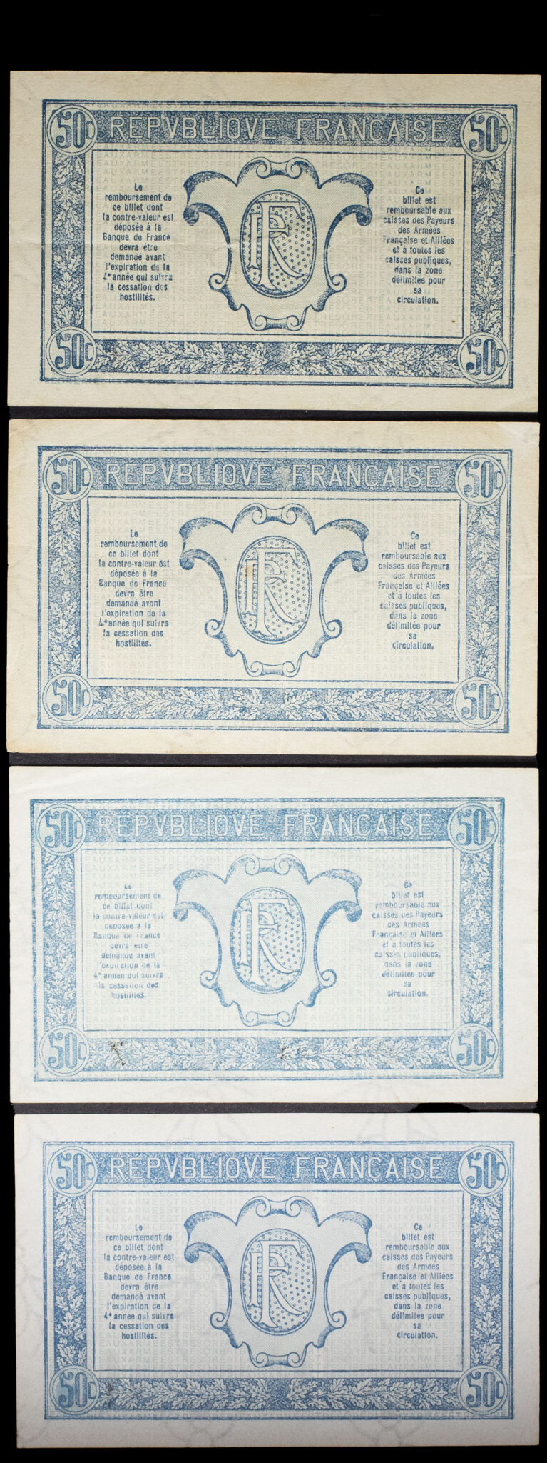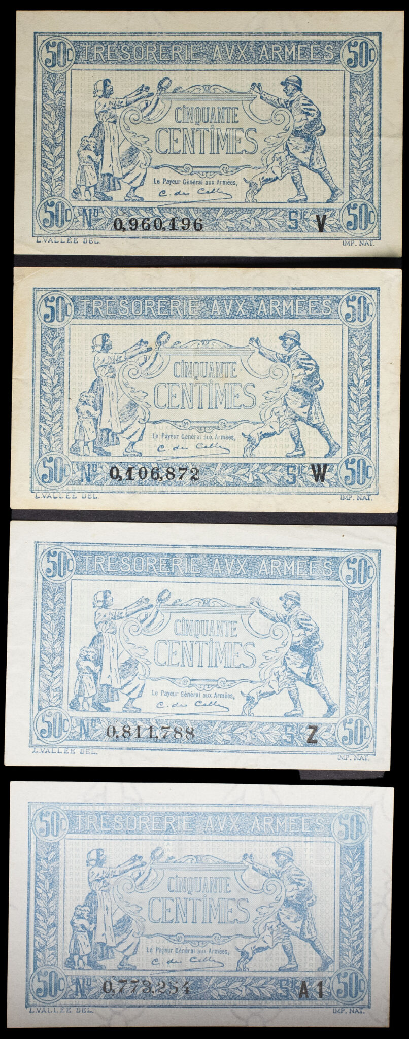 - Lot (4) - 50 centimes type “Trésorerie aux armées”, 2e émission 1919.