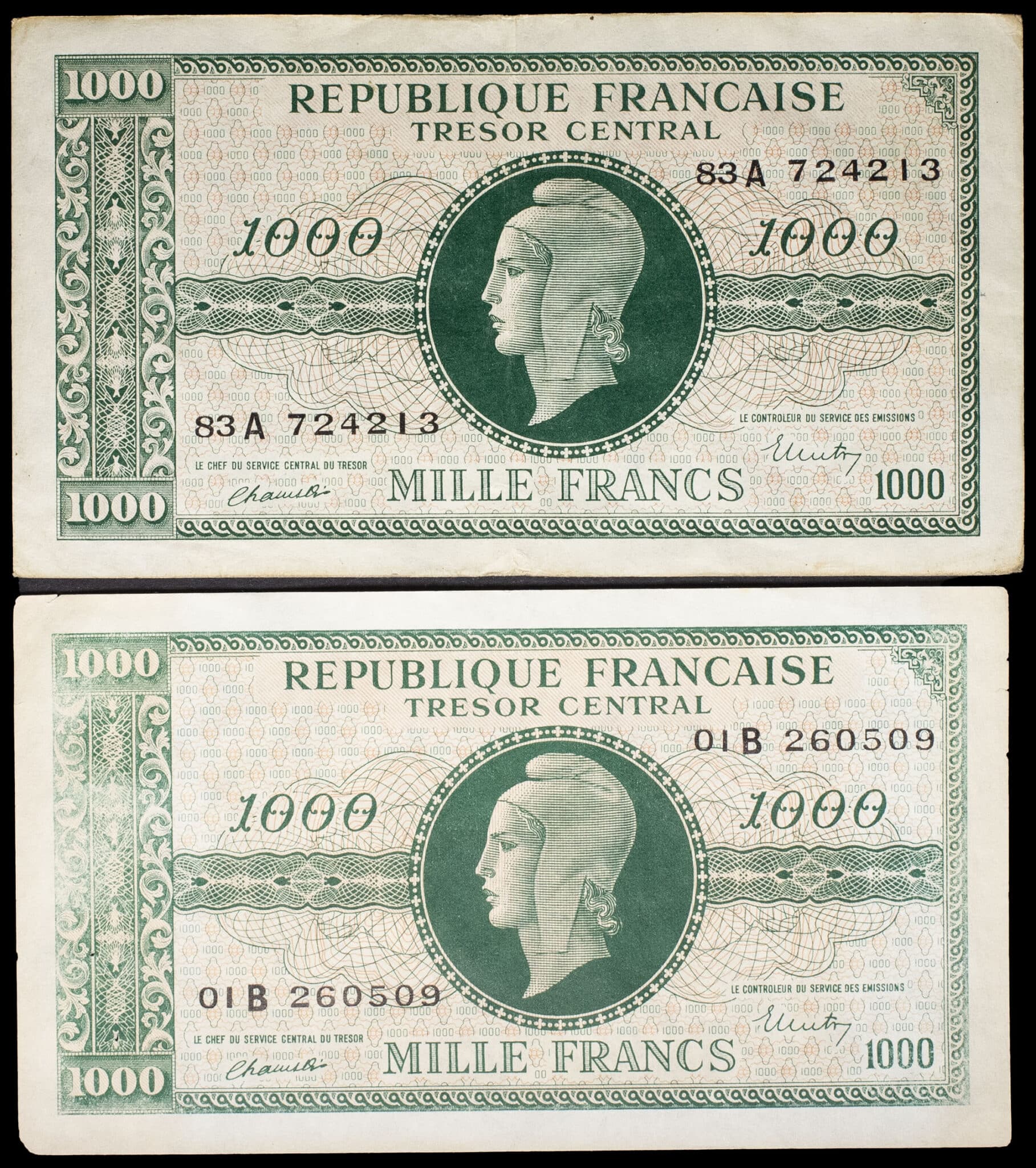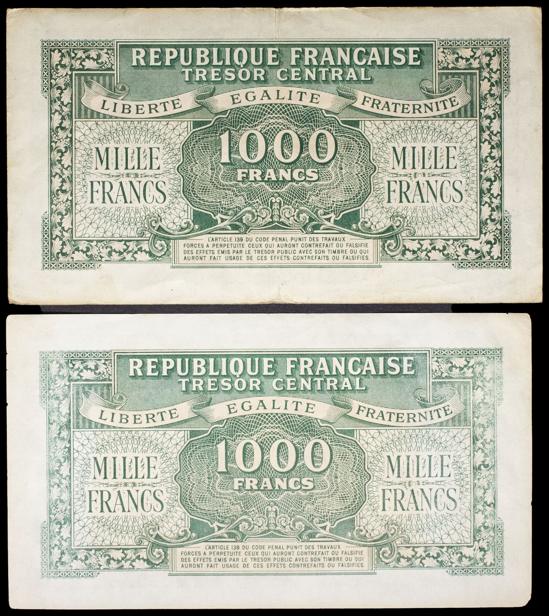 - Lot (2) - 500 francs type “Marianne” dit “Edmond Dulac”, impression anglaise ND (1945).
