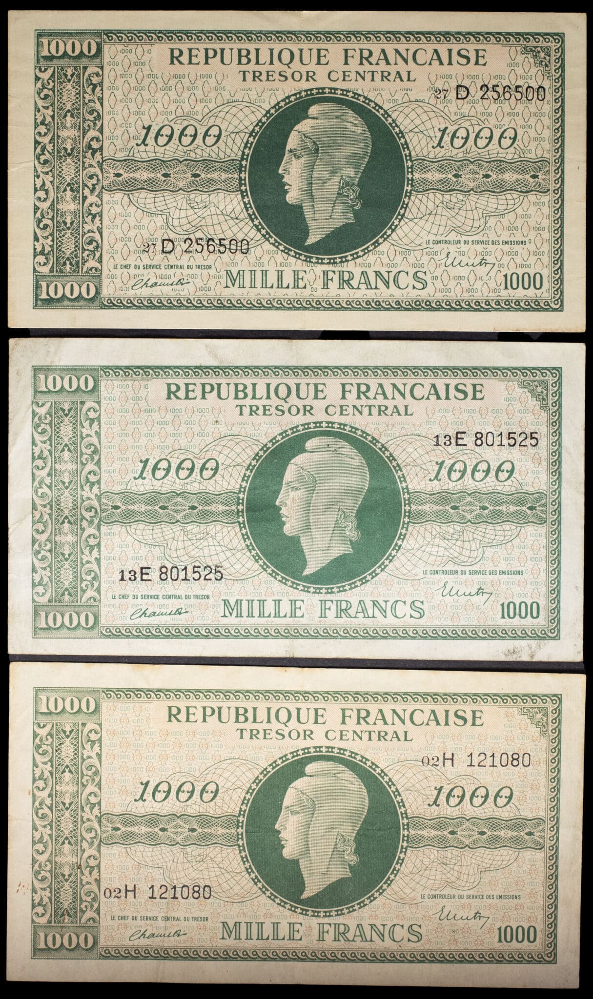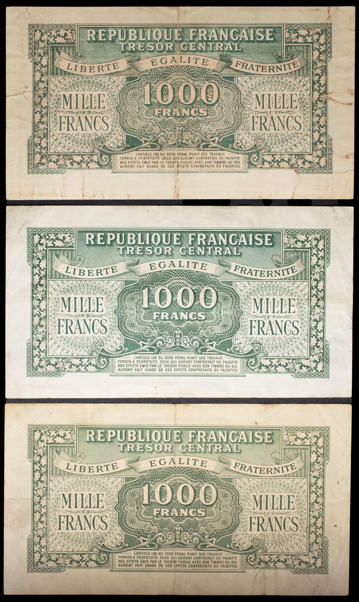 - Lot (3) - 500 francs type “Marianne” dit “Edmond Dulac” modifié, impression anglaise ND (1945).