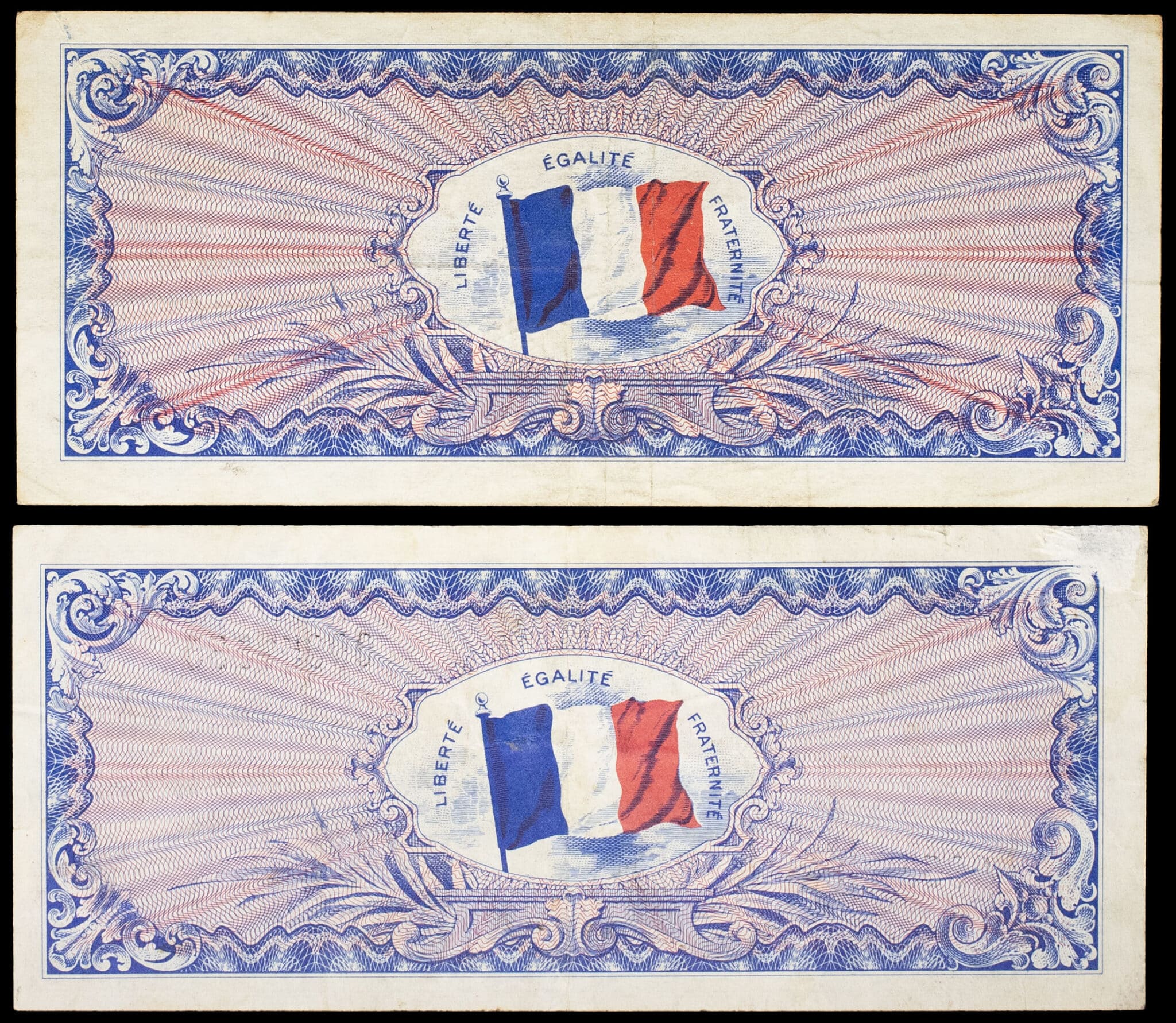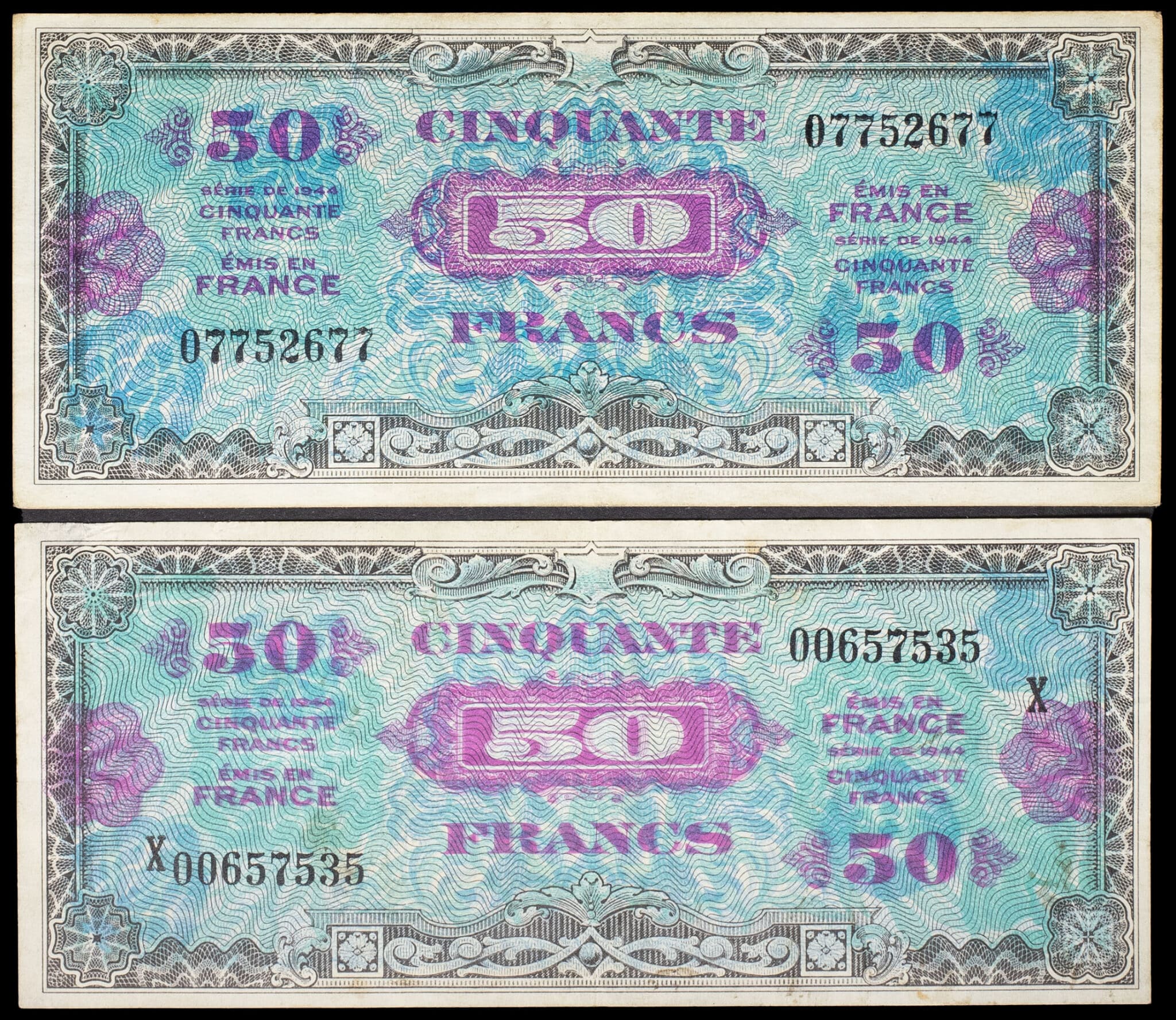 - Lot (2) - 50 francs type “Drapeau” (série complète) 1944.