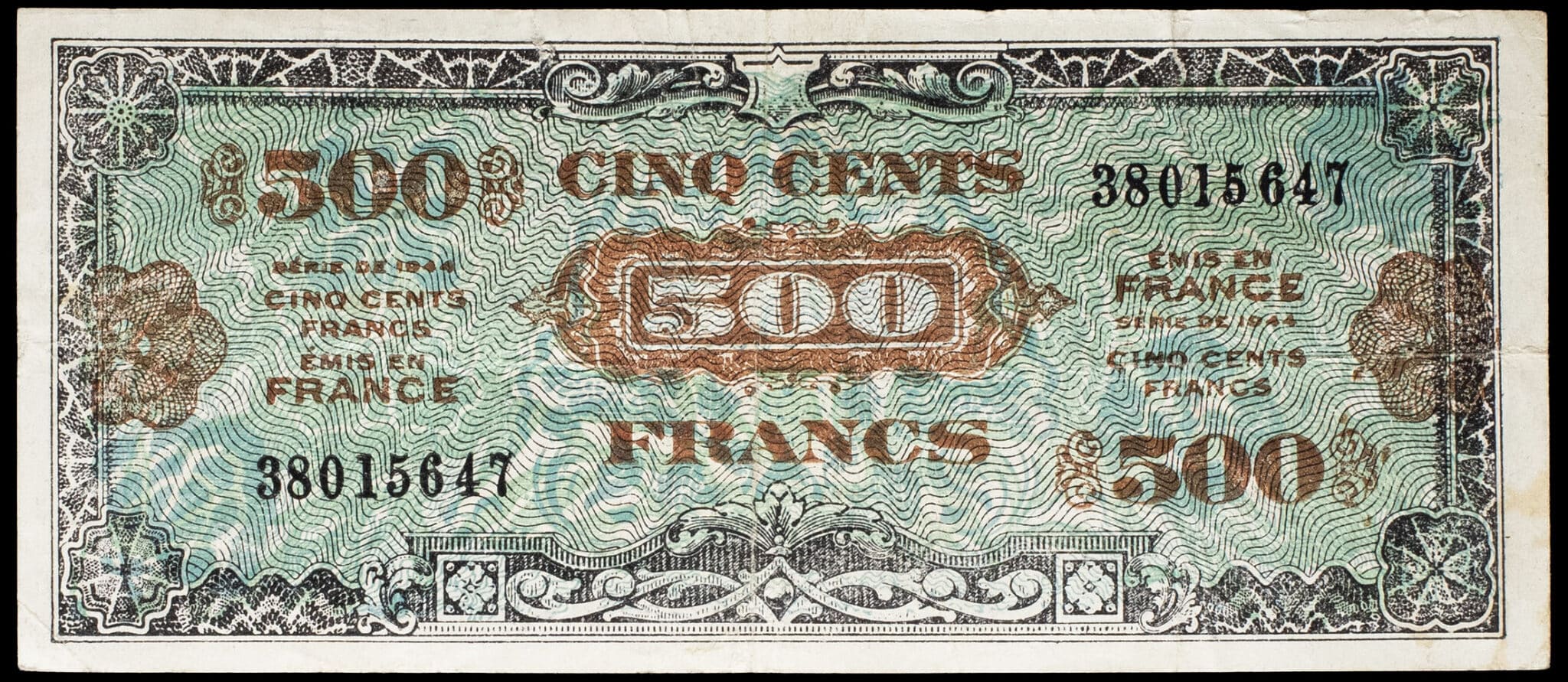 - 500 francs type “Drapeau” (sans série), faux d’époque 1944.