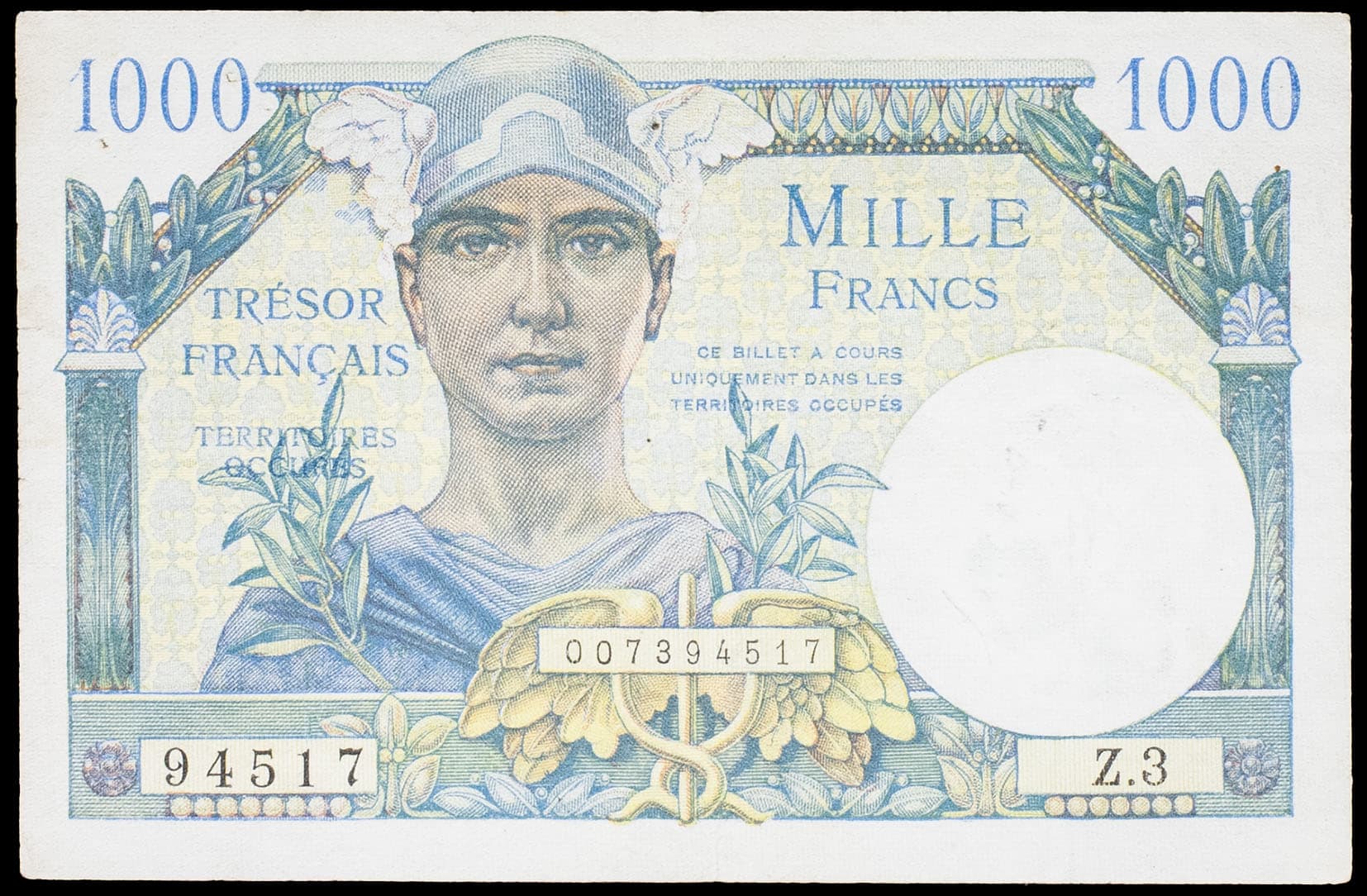 - 1000 francs type “Mercure” - Trésor Français / Territoires occupés (lettre Z inédite !) ND (1947).