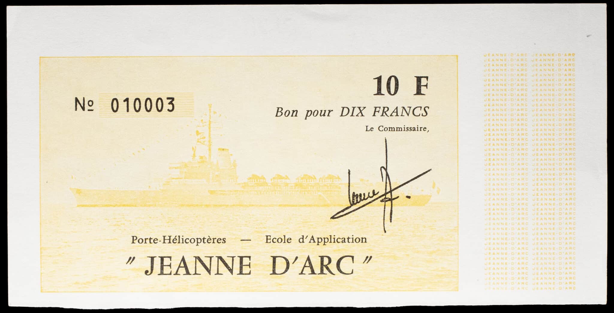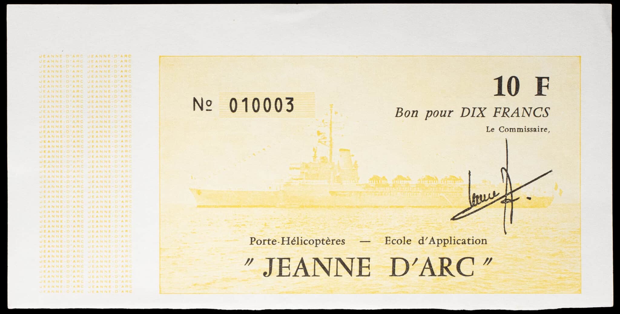 - 10 francs type “Porte-Hélicoptères - École d’Application Jeanne d’Arc” jaune ND (1978-1979).