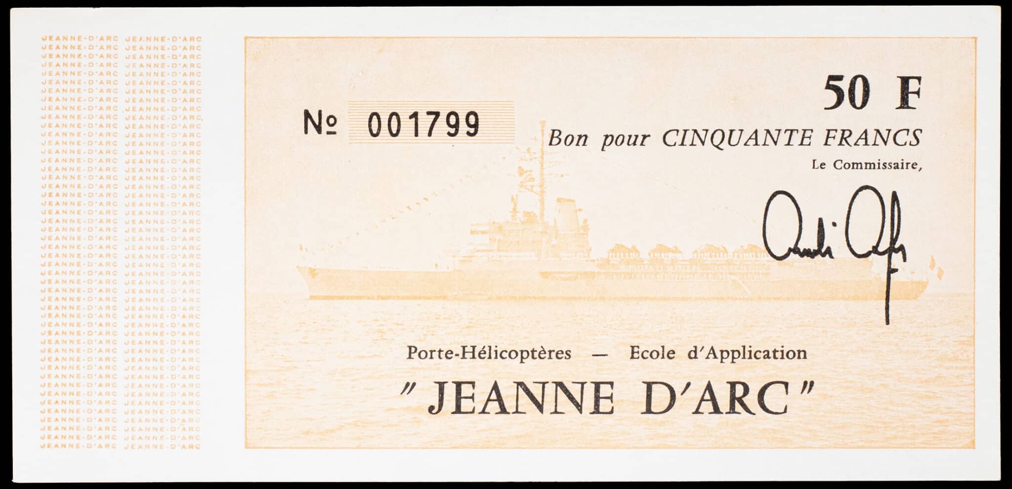 - 50 francs type “Porte-Hélicoptères - École d’Application Jeanne d’Arc” orange ND (1980-1981).