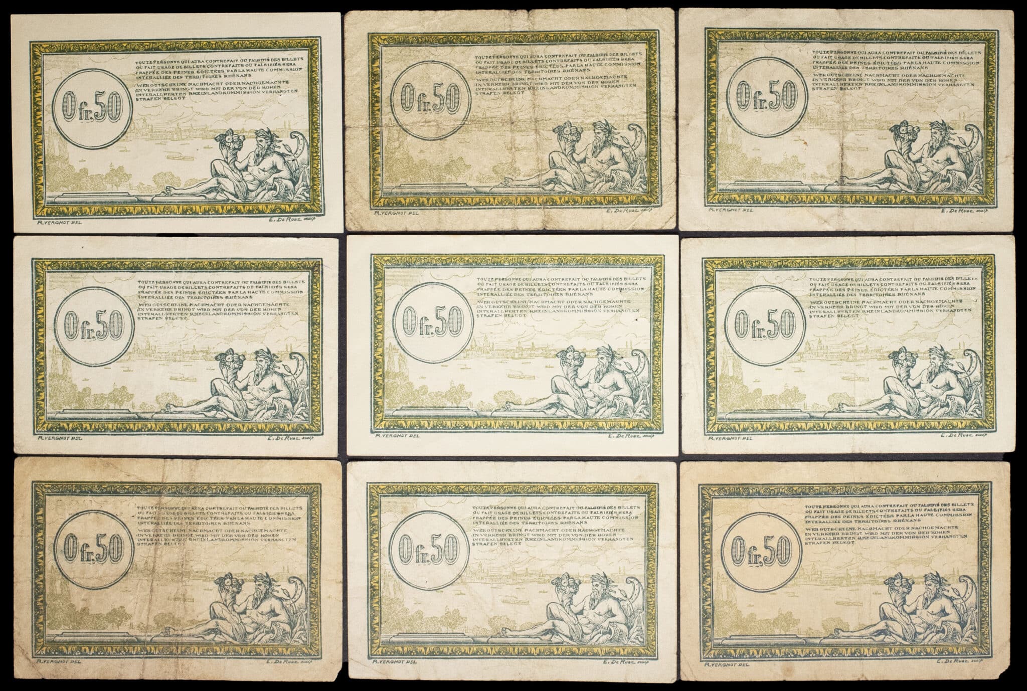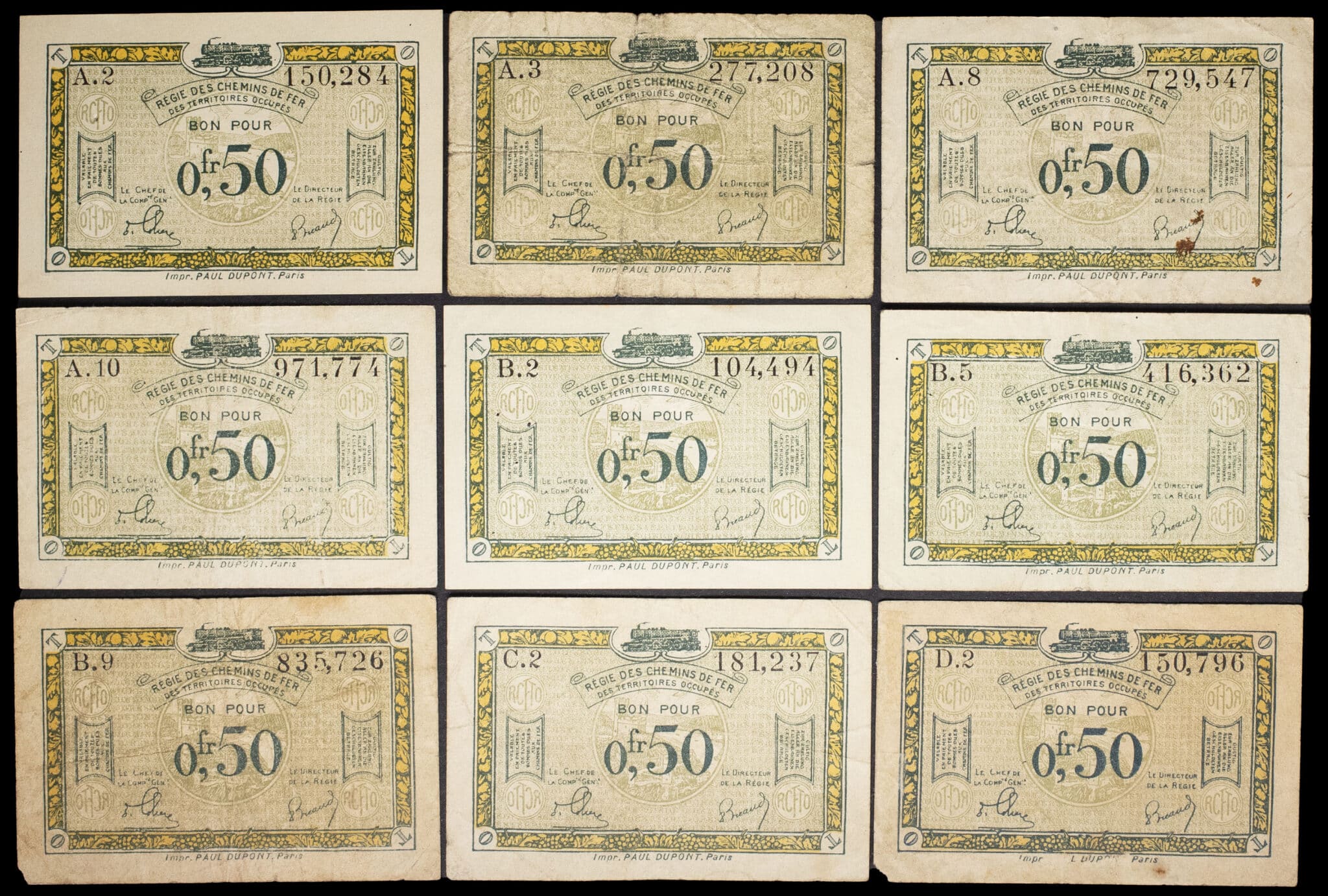 - Lot (9) - Bon de 0,50 francs - Régie des Chemins de Fer des Territoires Occupés ND (1923).