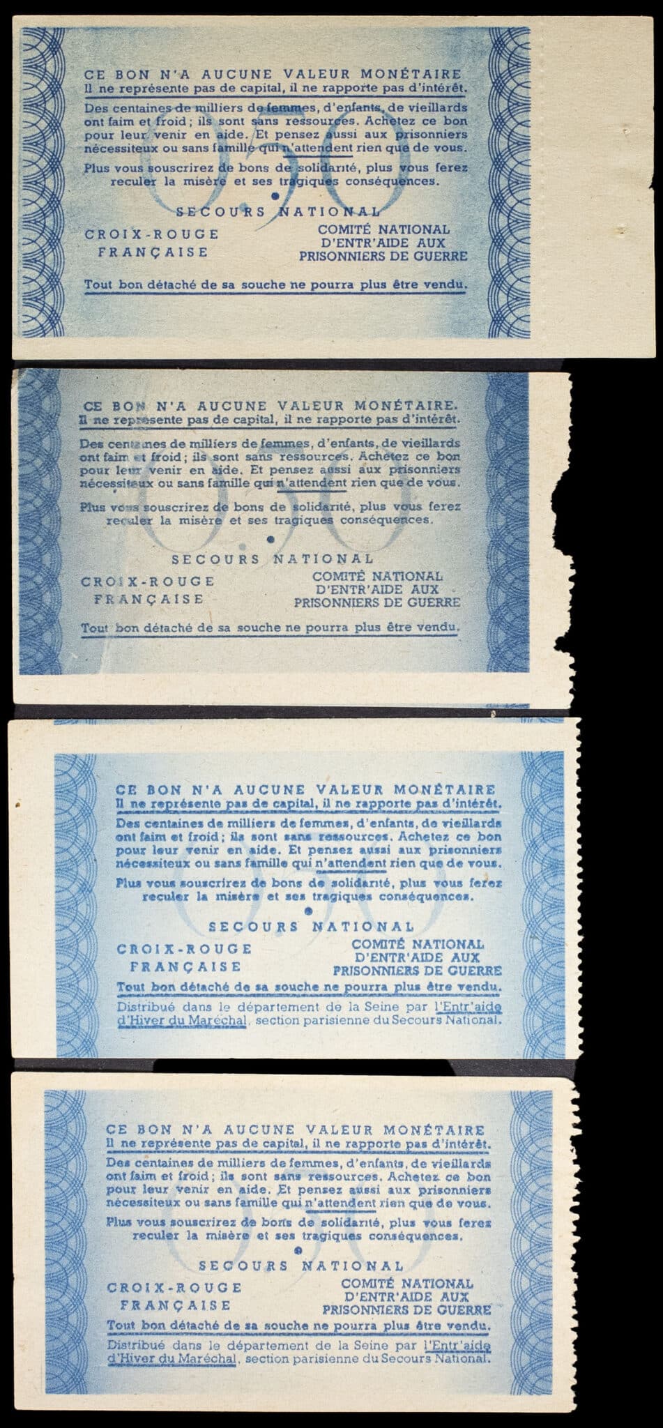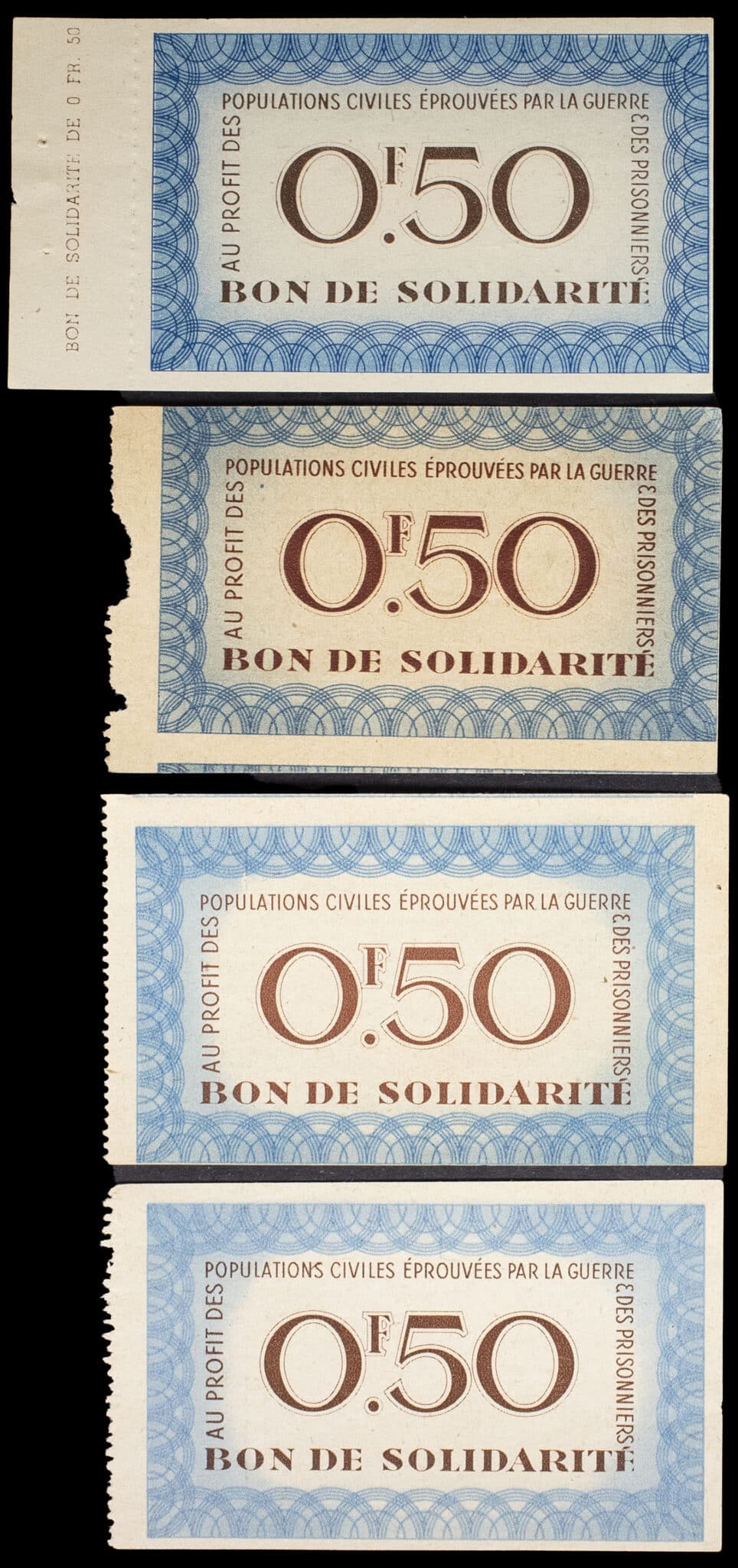 - Lot (4) - Bon de solidarité de 0,50 francs ND (1941).