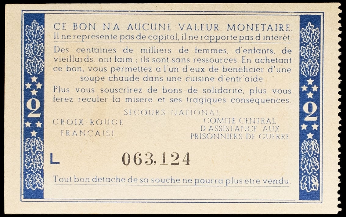 - Bon de solidarité de 2 francs (var. “Comité national”) ND (1941).