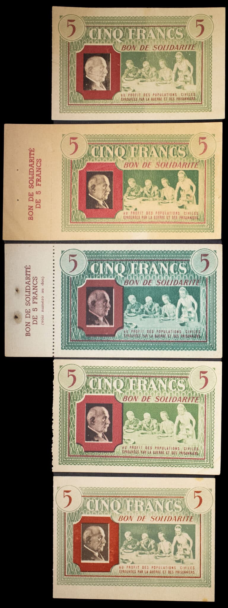 - Lot (5) - Bon de solidarité de 5 francs (var. “Comité national”) ND (1941).