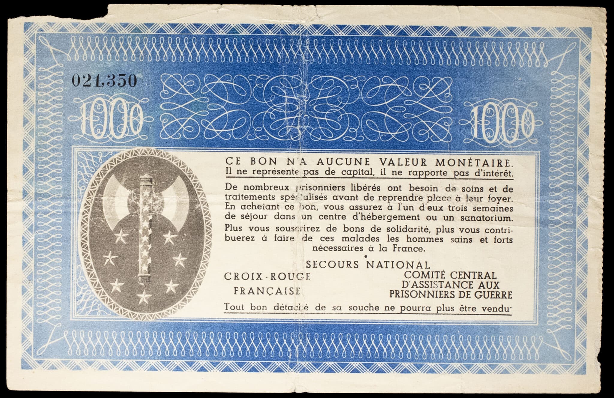 - Bon de solidarité de 1000 francs (var. “Comité central”) ND (1941).