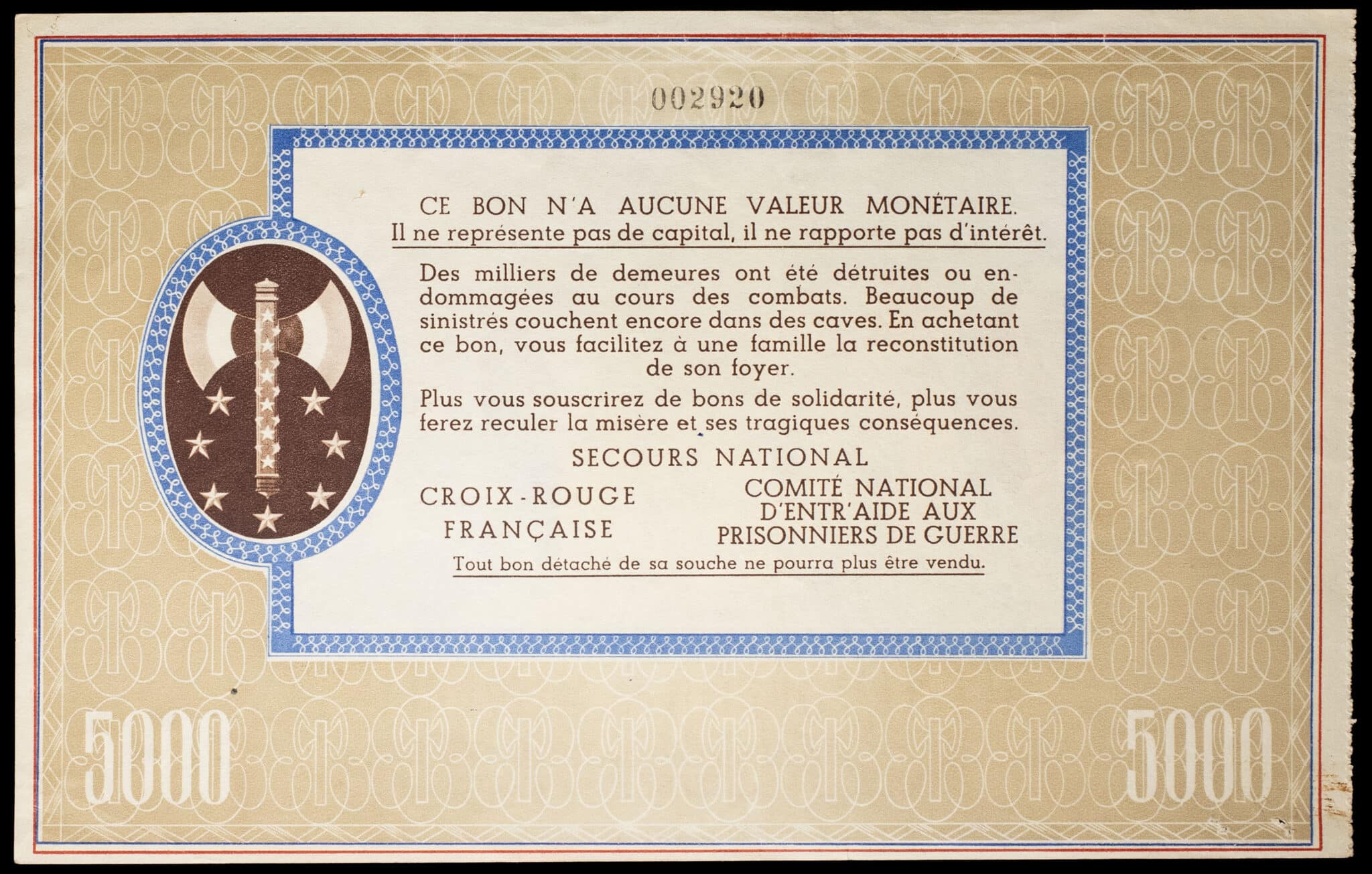 - Bon de solidarité de 5000 francs (var. “Comité national”) ND (1941).
