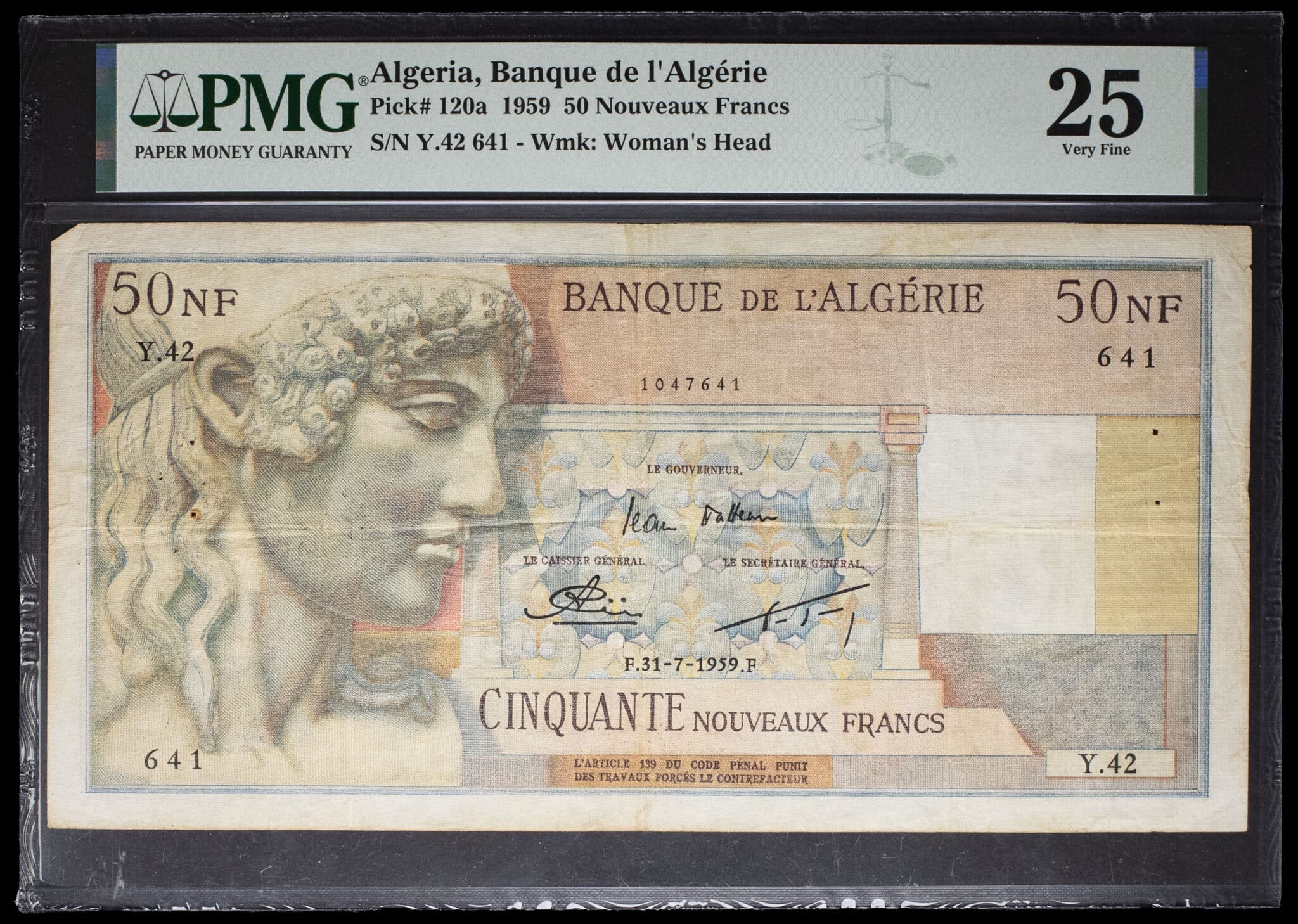 - ALGERIA 50 nouveaux francs type “Apollon” 31-7-1959.