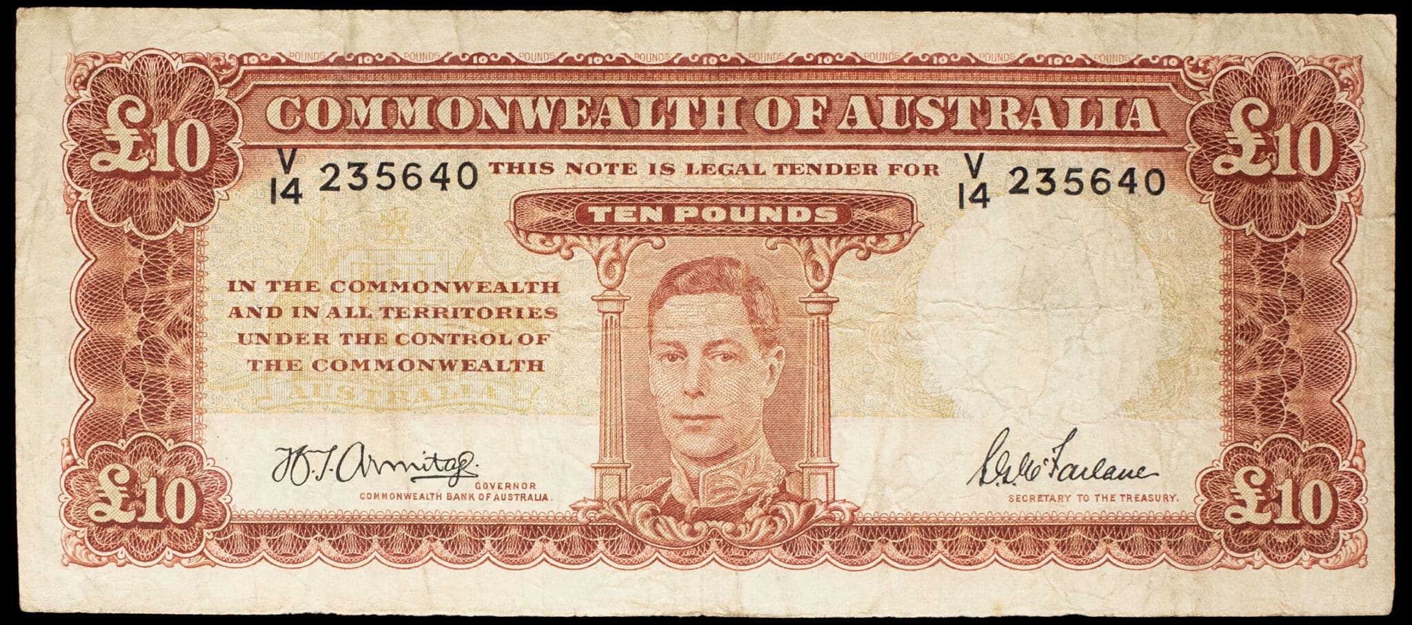- AUSTRALIA 10 pounds avec le portrait de George VI ND (1940-52).