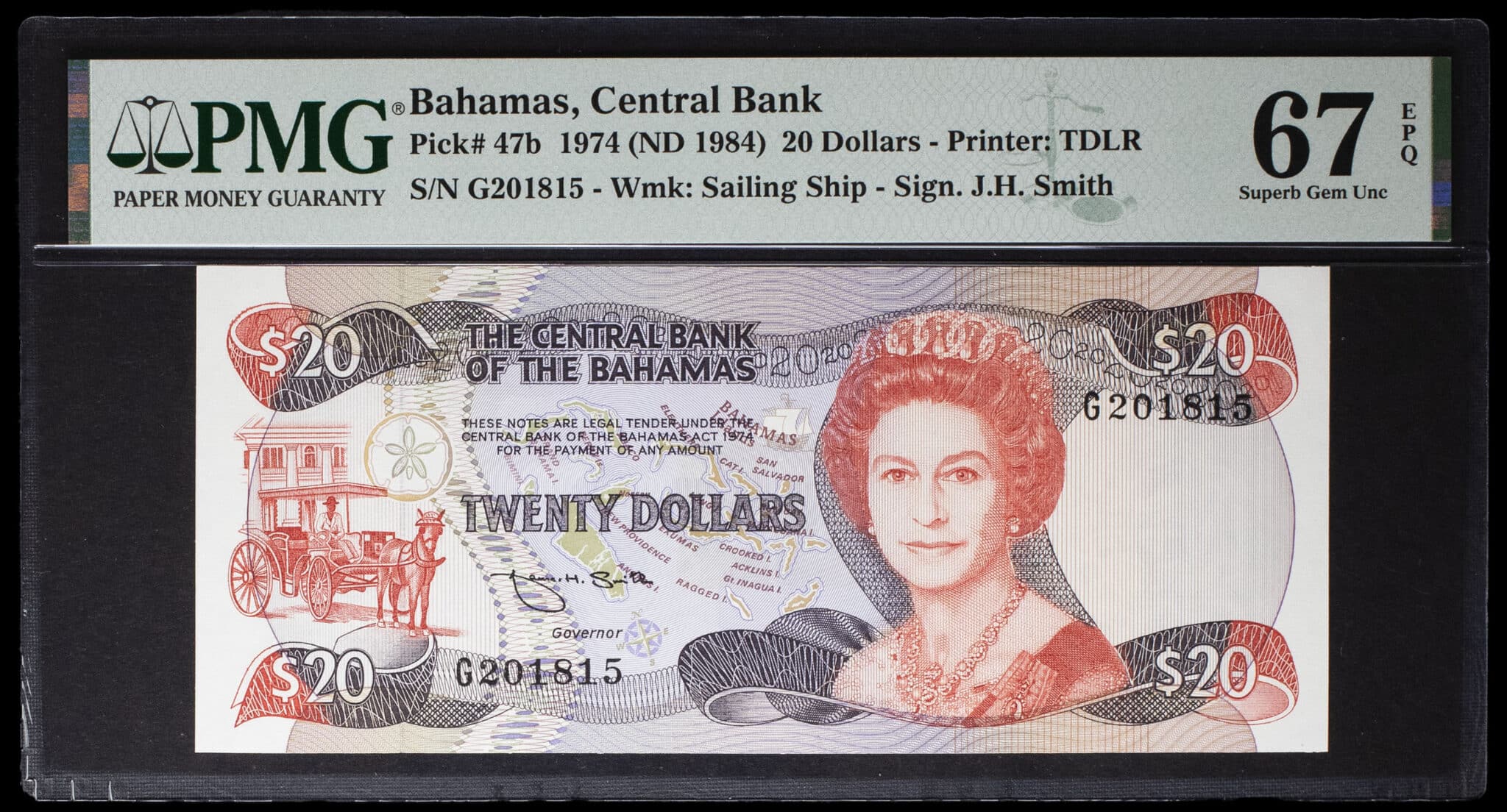 - 20 dollars avec le portrait de la reine Élisabeth (Elizabeth) II ND (1984).