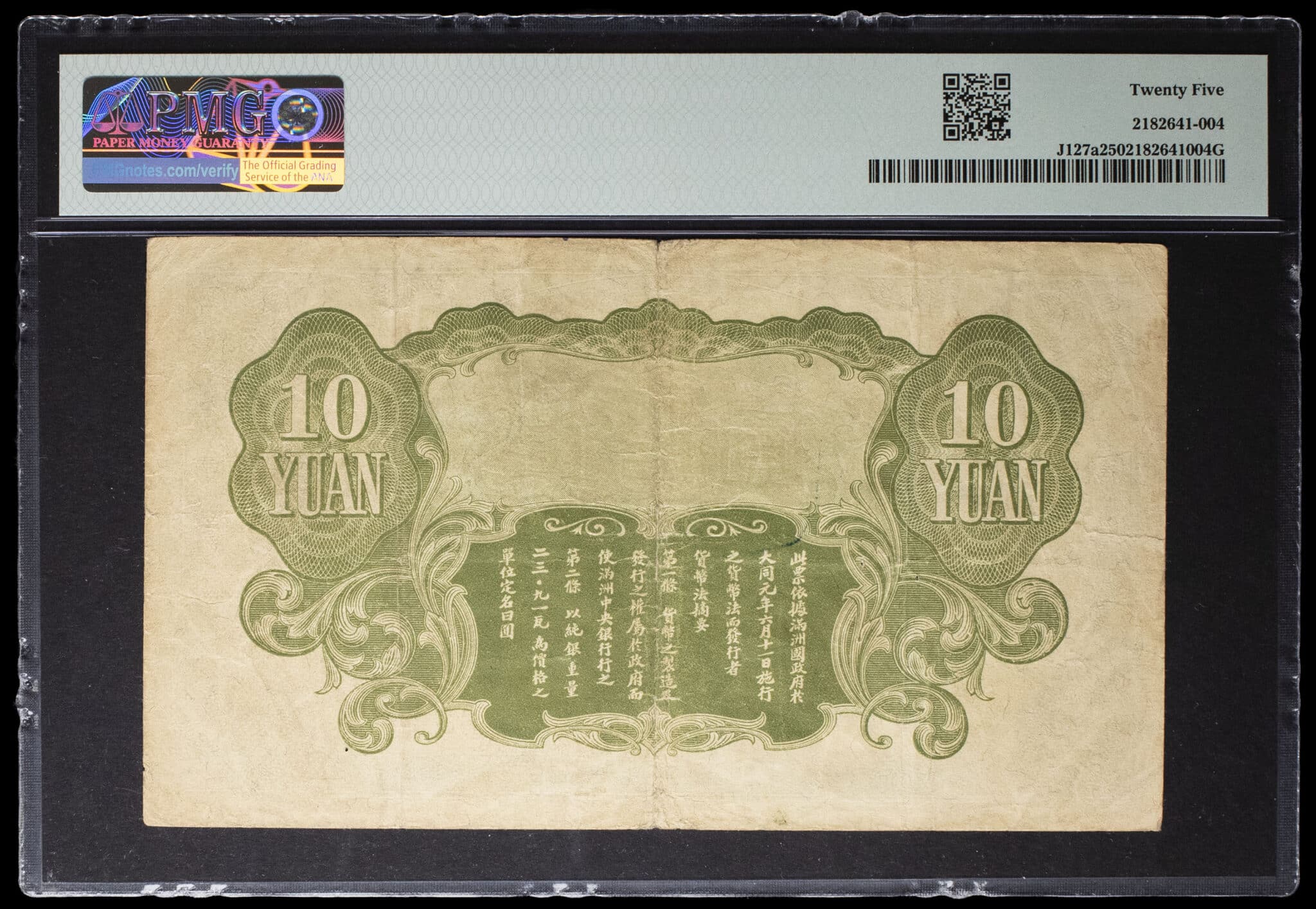 - CHINA Mandchourie japonaise. 10 yuan ND (1932).