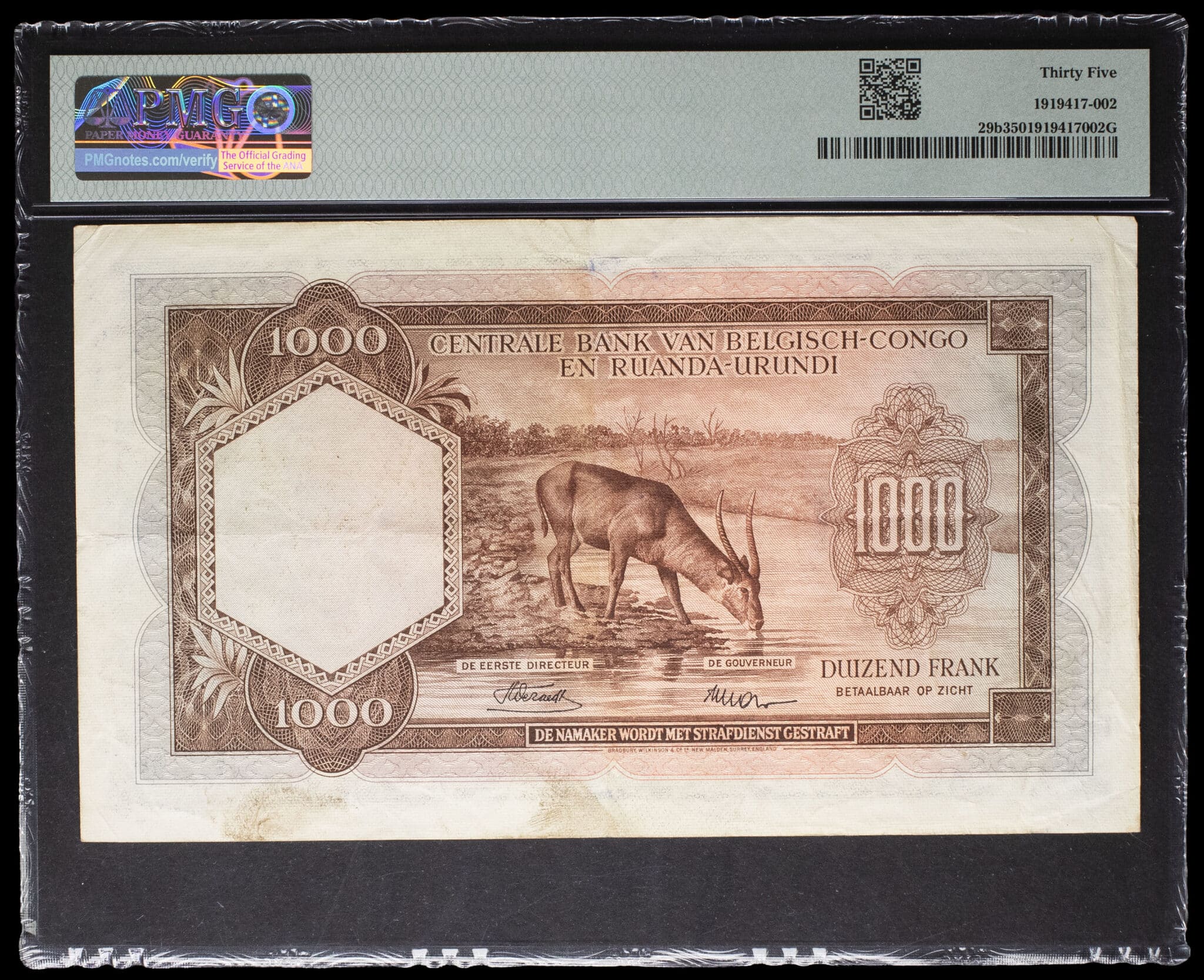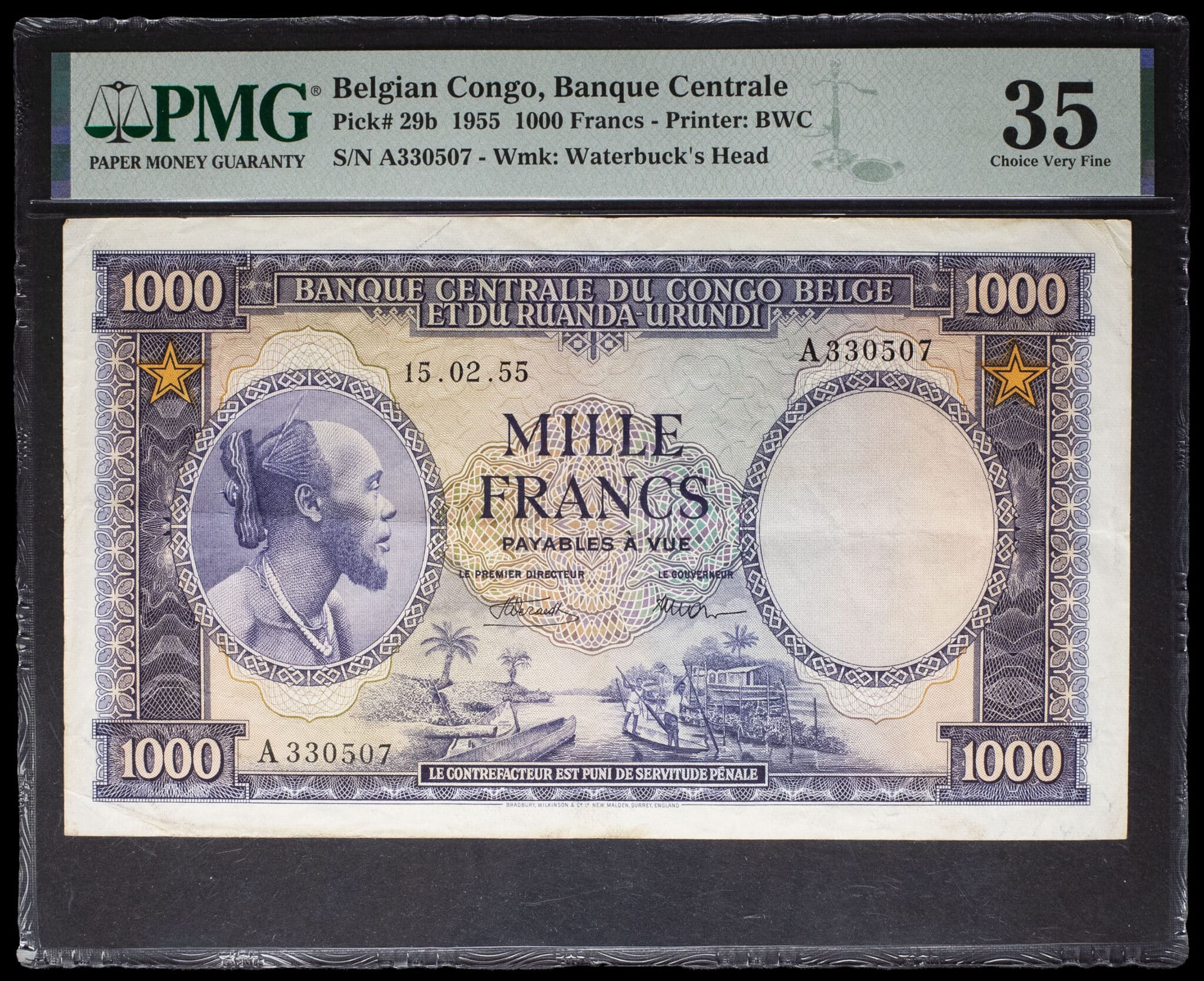 - BELGIAN CONGO 1000 francs type “homme Moliro” 15-02-1955.