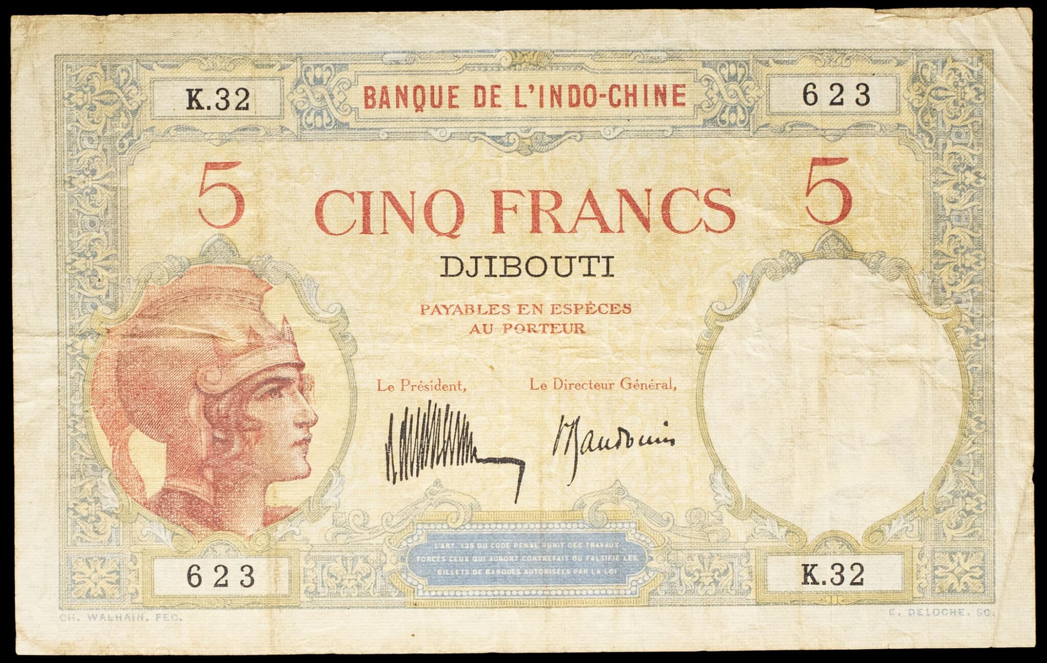 - 5 francs type “Walhain” - Banque de l’Indo-Chine ND (1932-1936).