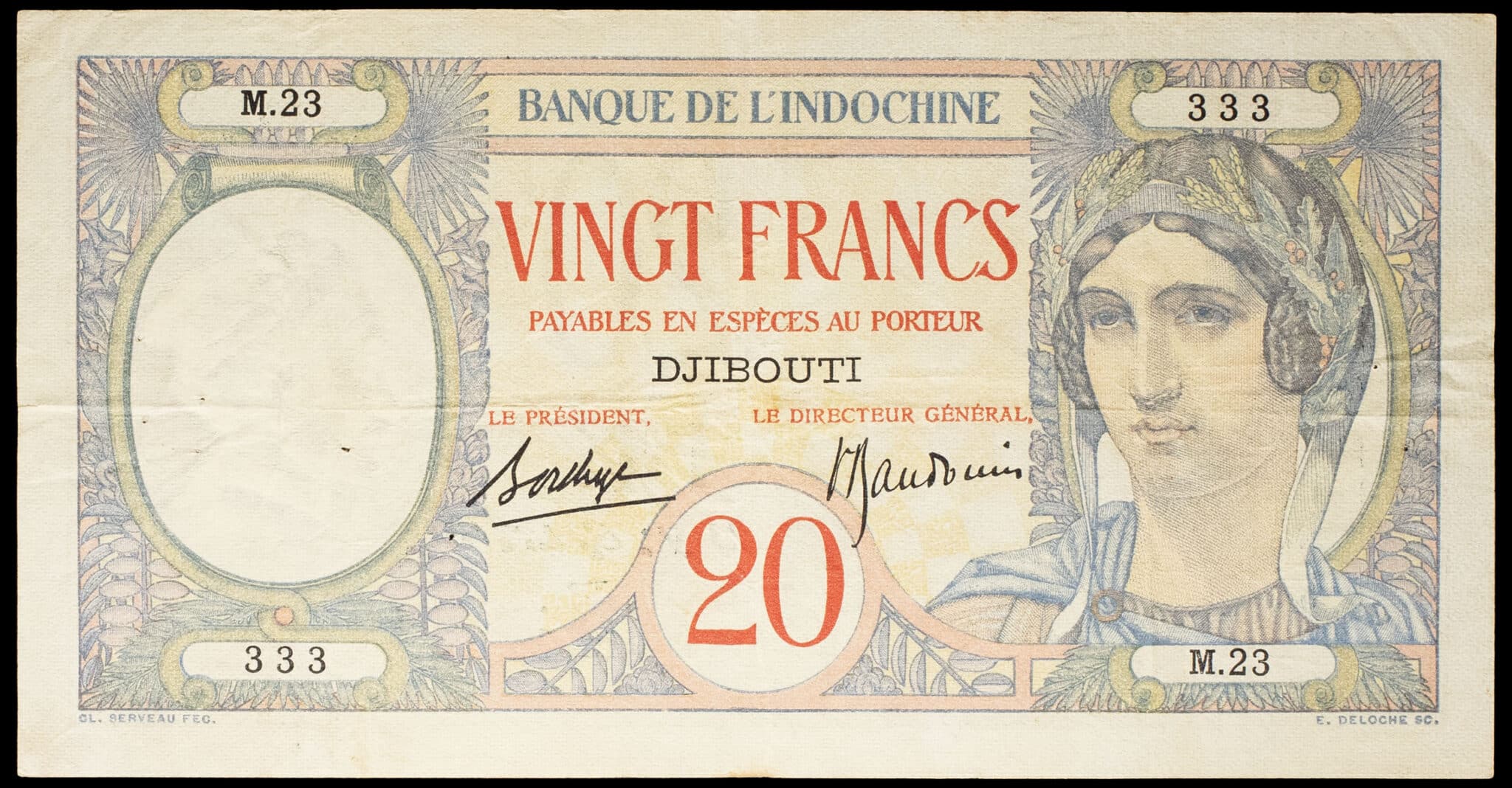 - 20 francs type “paon” bleu-gris et jaune - Banque de l’Indochine ND (1941).