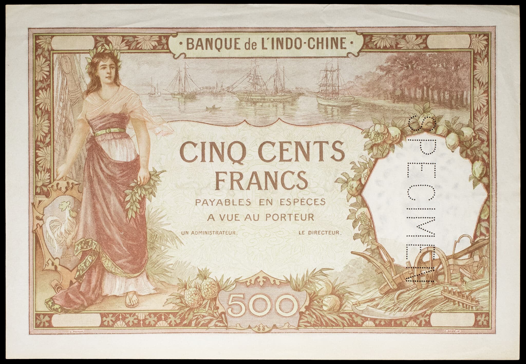 - 500 francs (SPÉCIMEN) - Banque de l’Indo-Chine ND (20 juillet 1927).