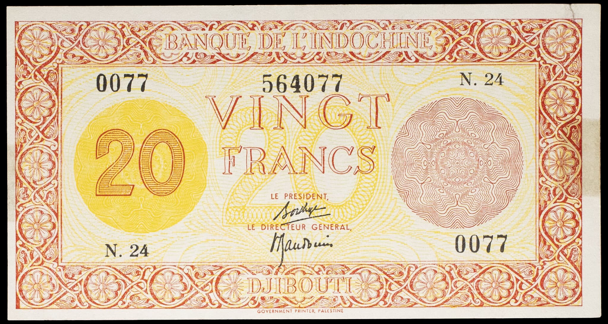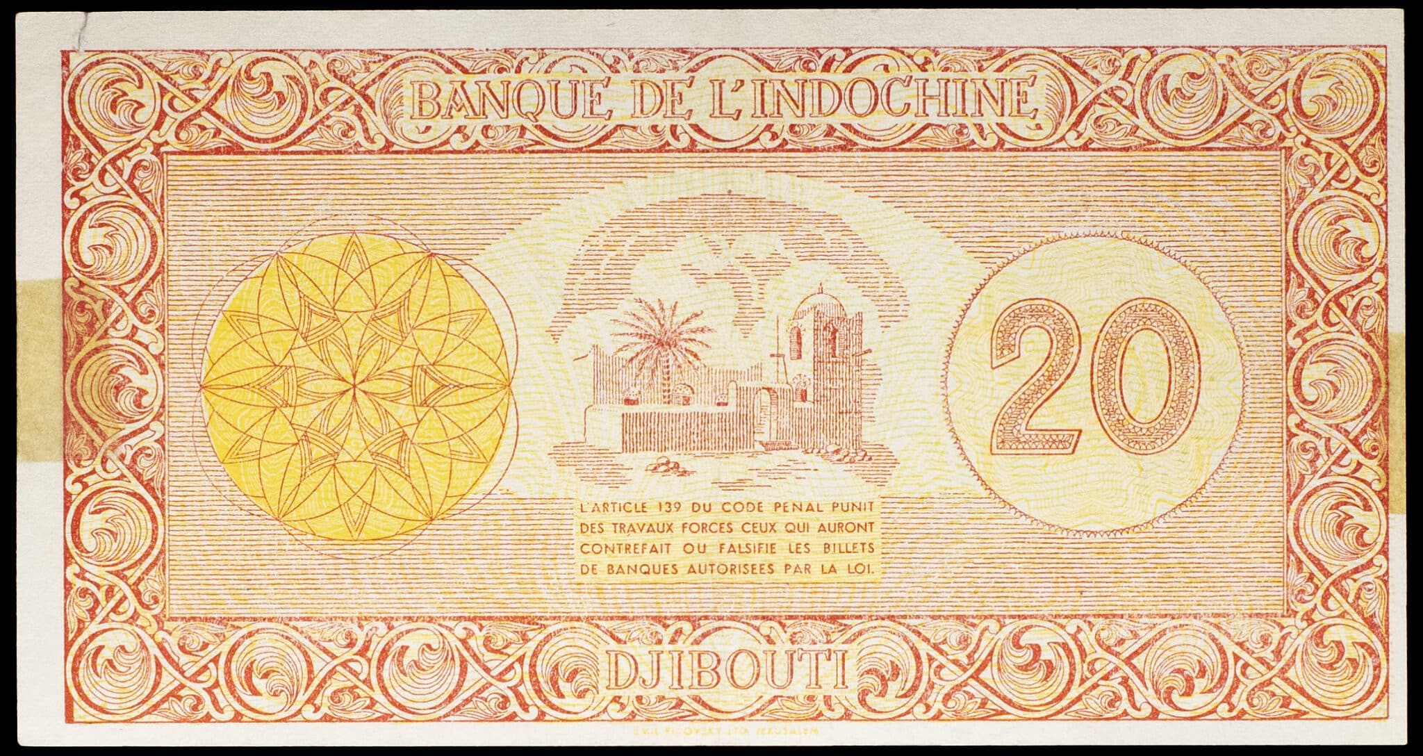 - 20 francs impression Palestine - Banque de l’Indochine ND (1945).