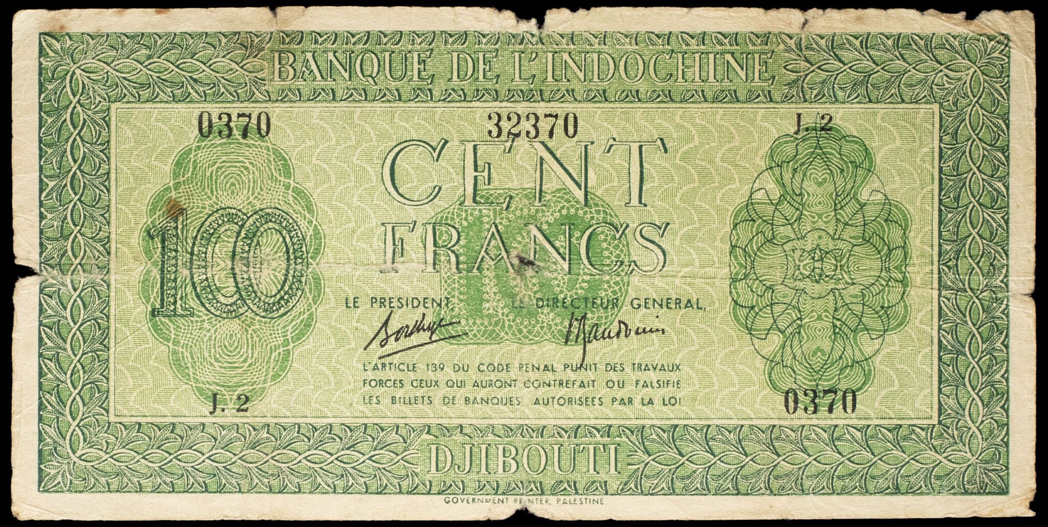 - 100 francs, impression Palestine - Banque de l’Indochine ND (1945).