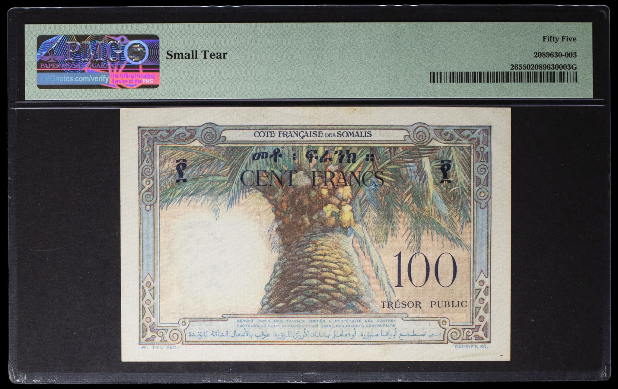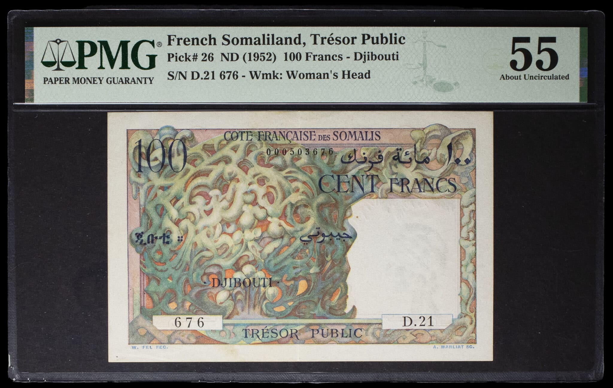 - 100 francs - Côte Française des Somalis (Trésor Public) ND (1952).
