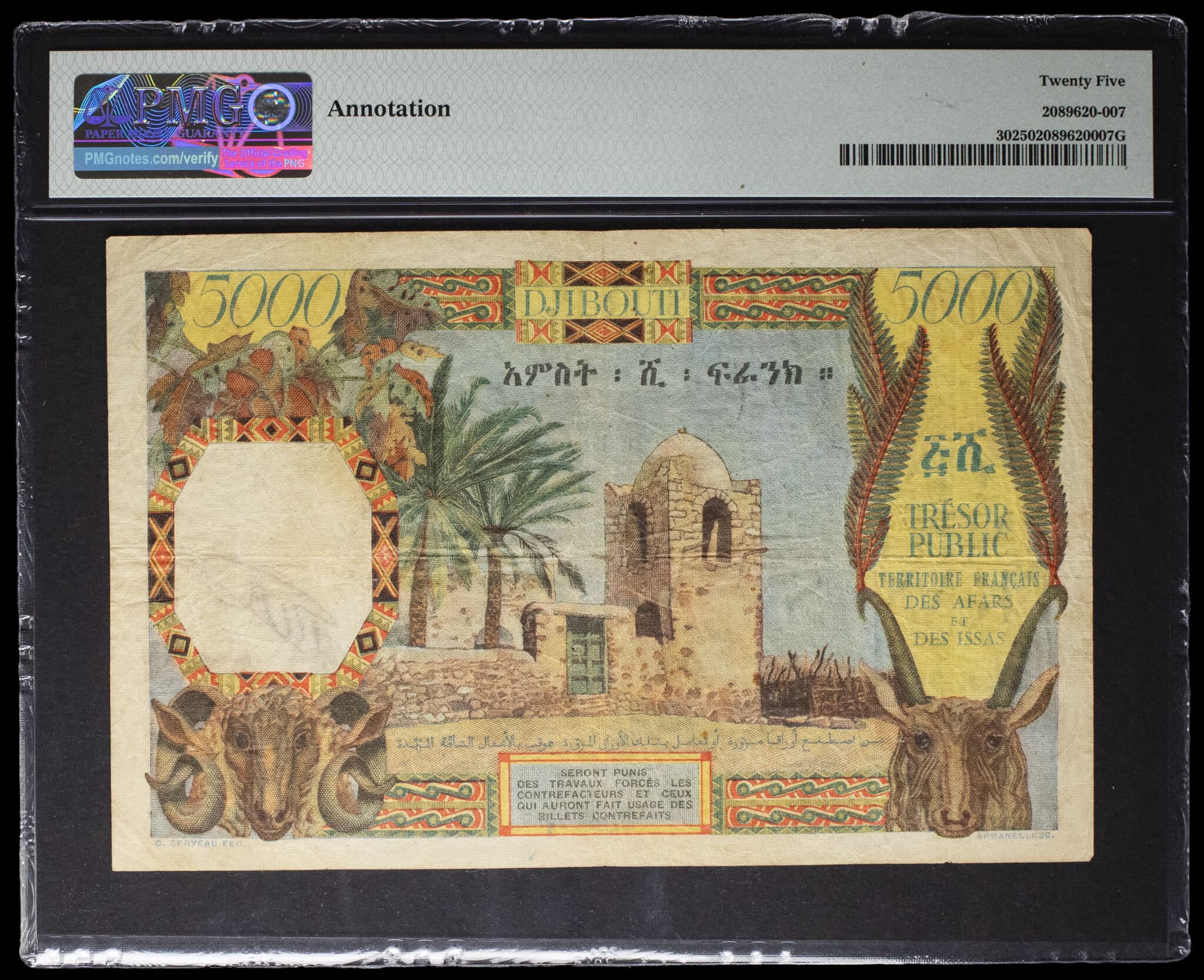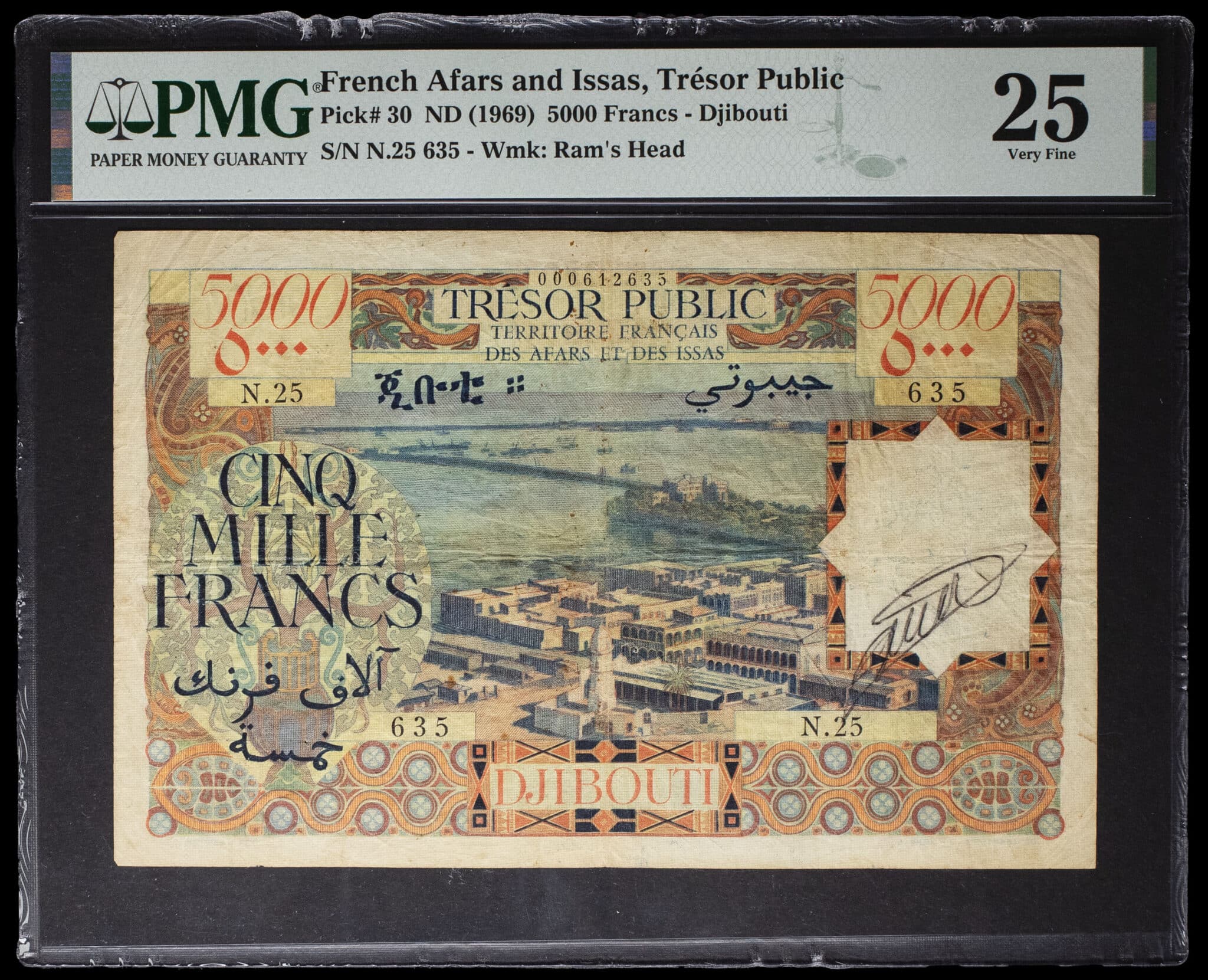 - 5000 francs type “port de Djibouti” - Territoire Français des Afars et des Issas (Trésor Public) ND (1969).