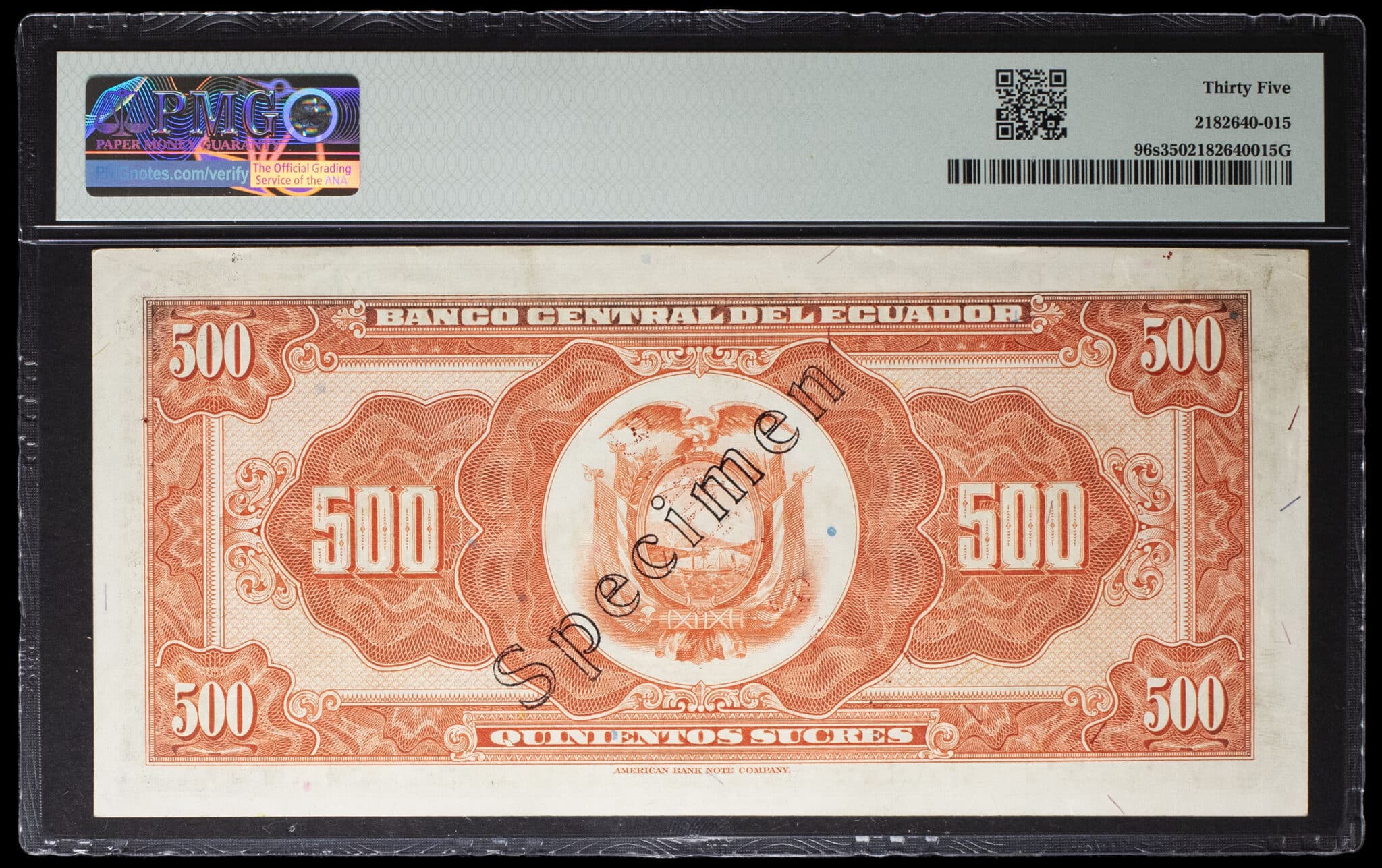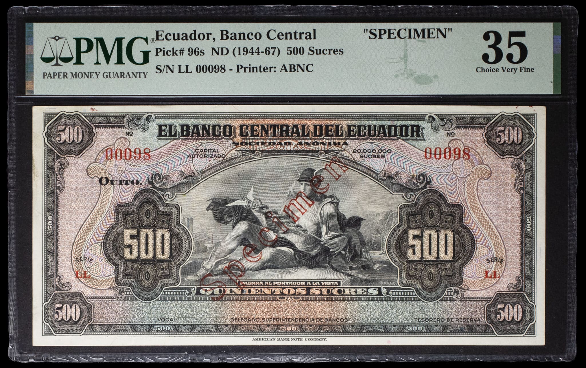 - ECUADOR 500 sucres type “Mercure” SPÉCIMEN ND (1944).