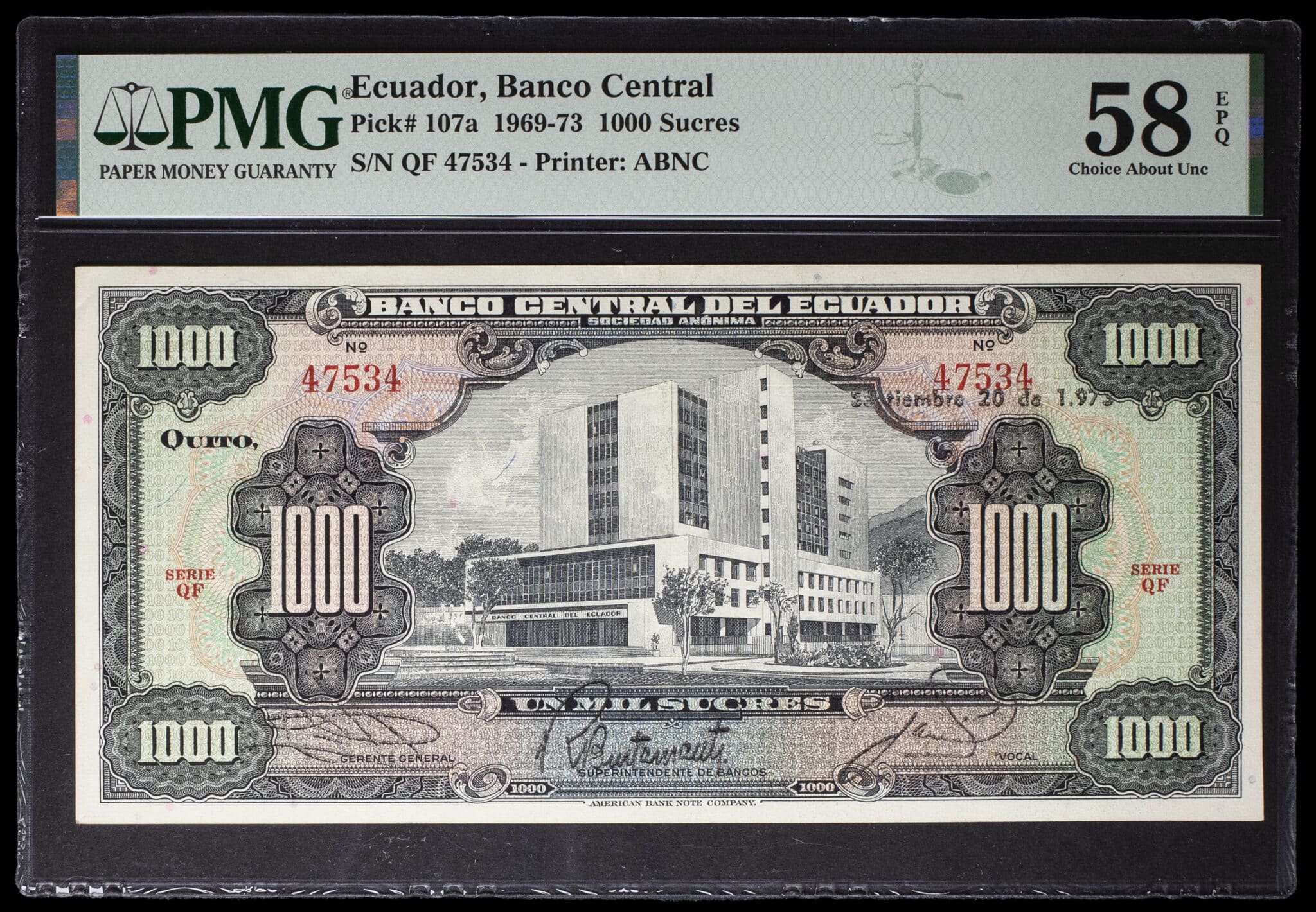 - ECUADOR 1000 sucres type “banque centrale” 20 septembre 1973.