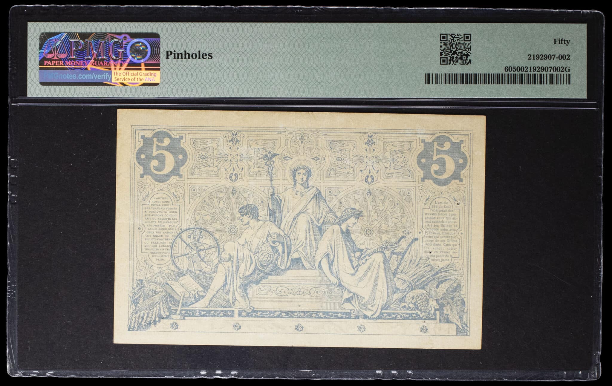 PMG 50 About Uncirculated (2192907-002). Quelques épinglages et un léger pli central. SUP.