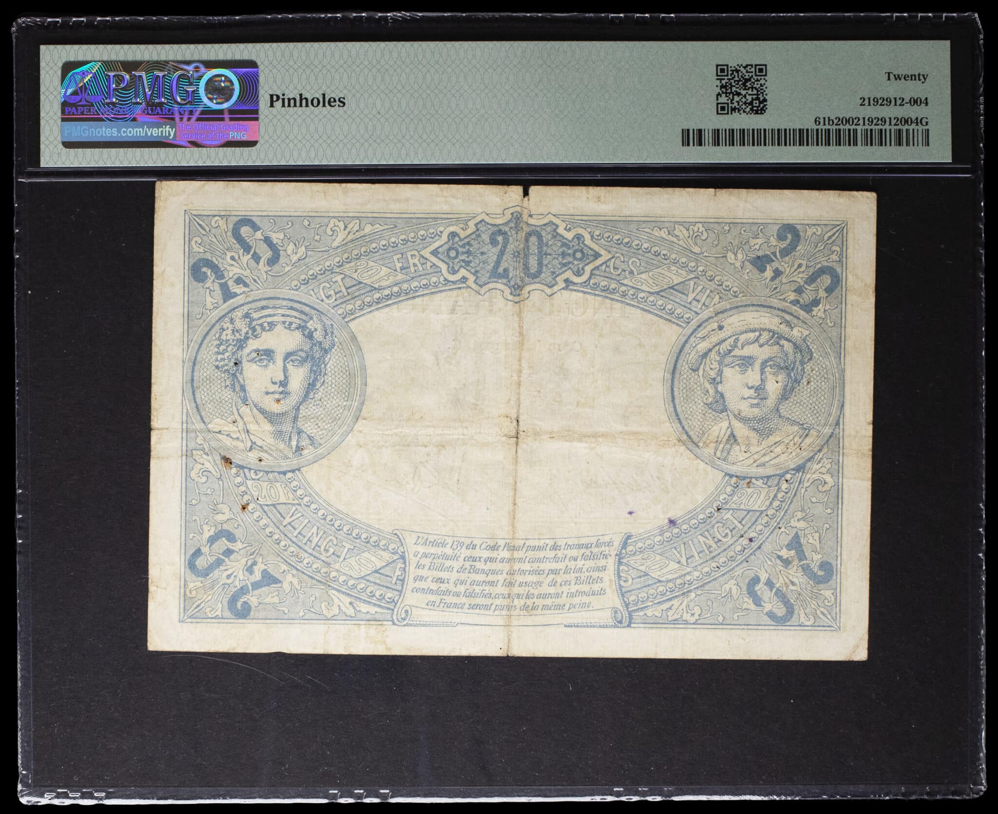 PMG 20 Very Fine (2192912-004). Épinglages, plis et déchirures. TB+.