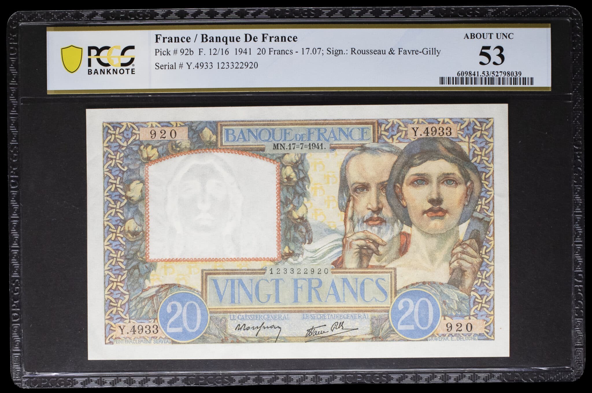 - 20 francs type “Travail et Science” 17-7-1941.